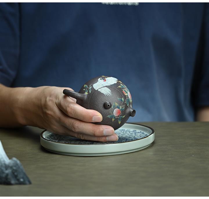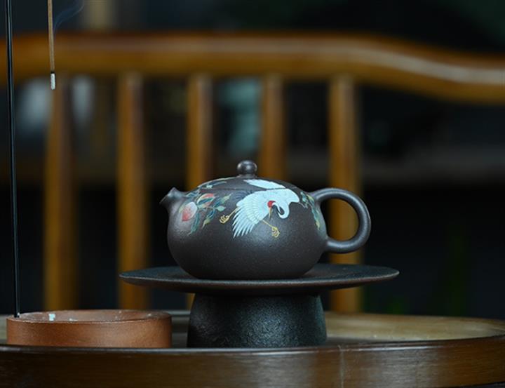 650cc柴燒沈香泥松鶴延年掇只泡茶壺POT8457