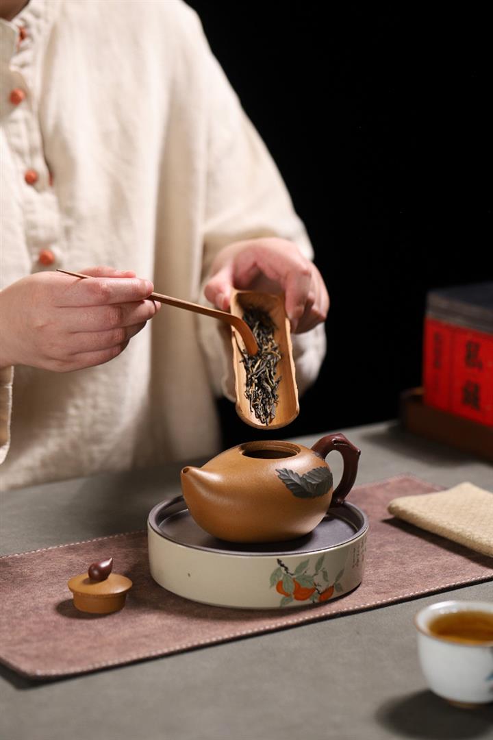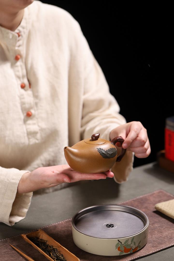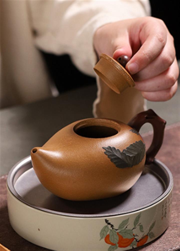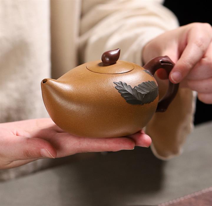 【泥料特點】砂土氣重,似淳實農民,日久使用,漸露鋒芒,養成變化,溫潤莊重。紫砂是壹種雙重氣孔結構的多孔性材質,氣孔微細,密度高。用紫砂壺沏茶,不失原味,且香不渙散,得茶之真香真味。紫砂使用越久,壺身色澤越發光亮照人,氣韻溫雅。紫砂壺長久使用器身會因撫摸擦拭,變得越發溫潤光澤。