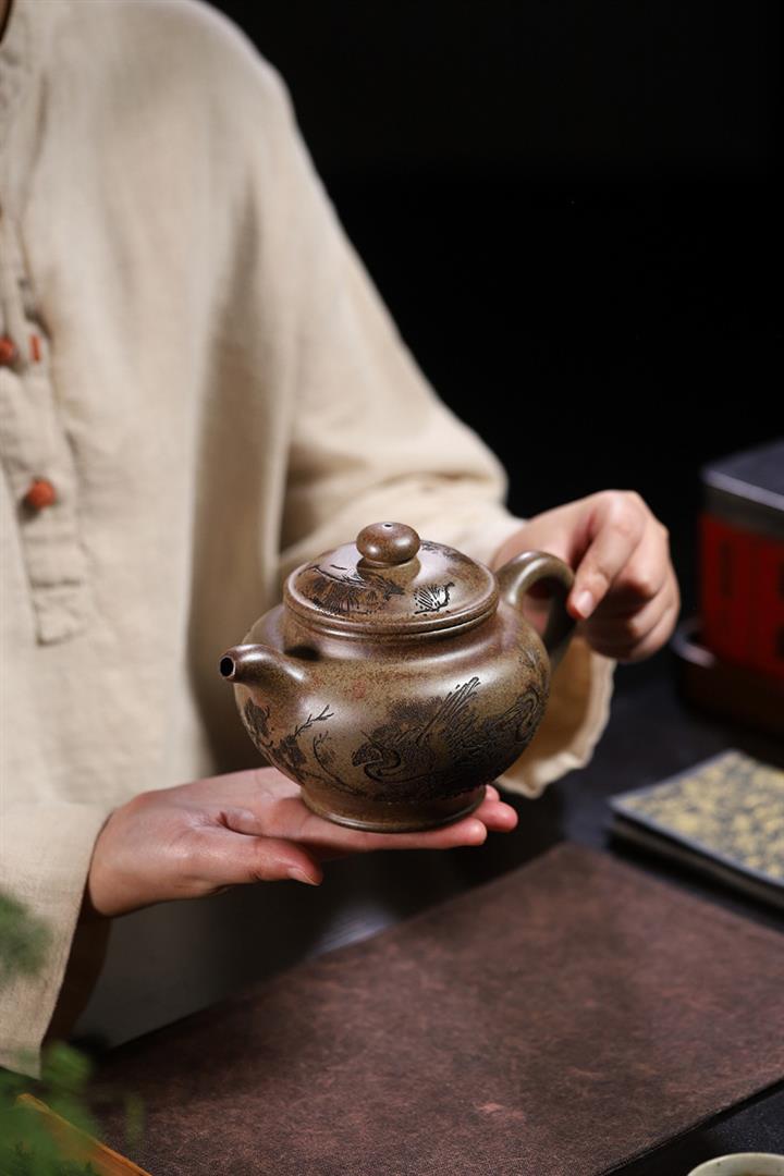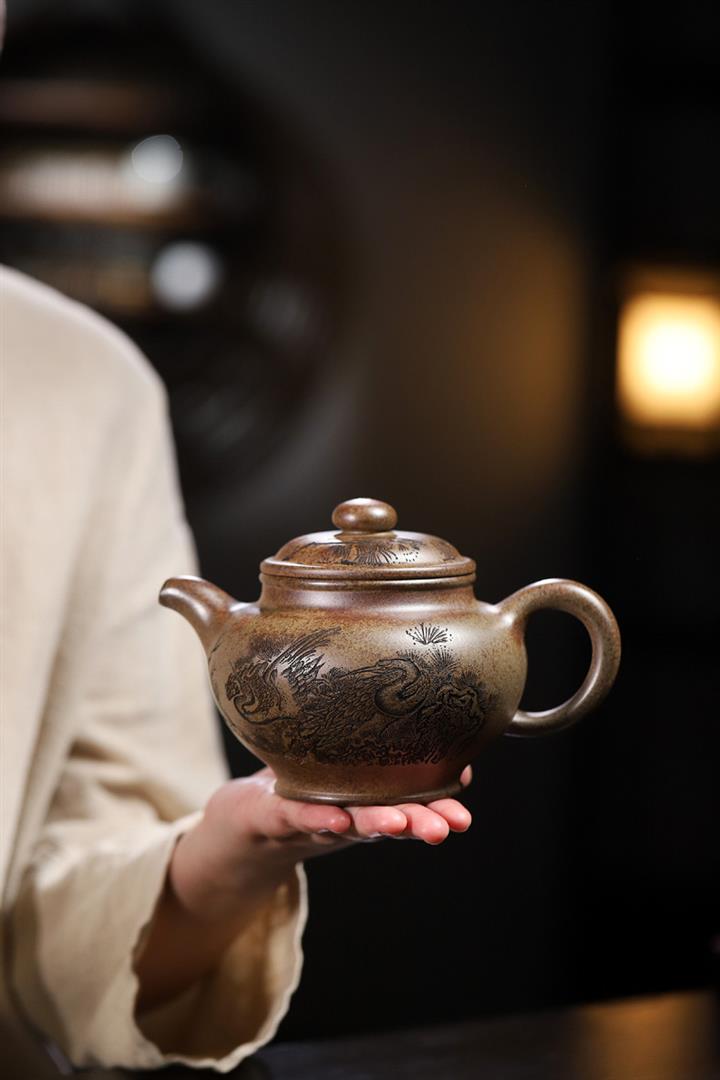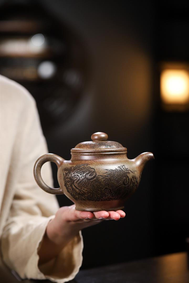 650cc柴燒沈香泥松鶴延年掇只泡茶壺POT8457