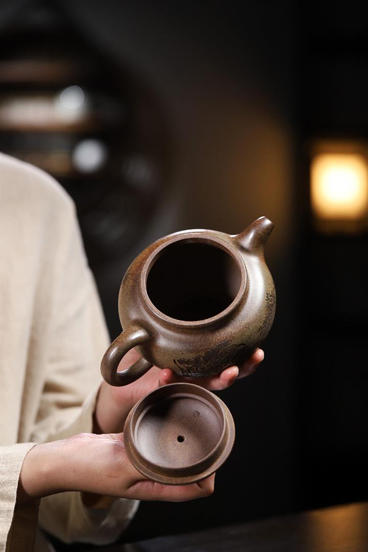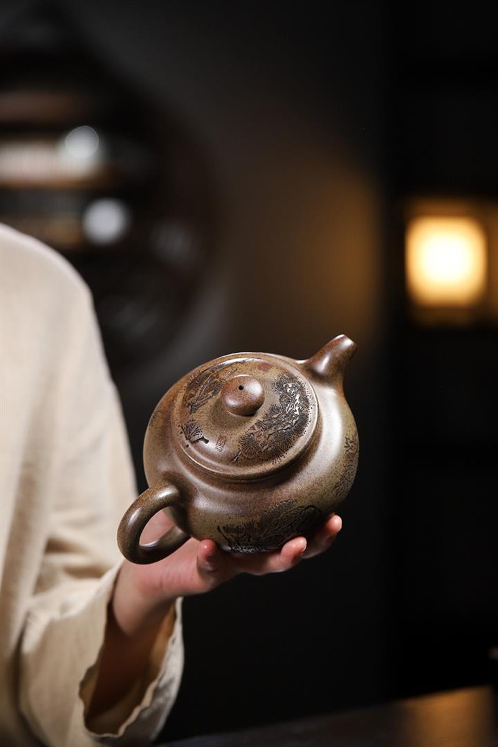 【作品介紹】此款壺形線條流暢,壺把,壺嘴,壺身壹氣呵成栩栩如生,是收藏把玩的好壺,泥料色澤古樸典雅,日久使用,漸露鋒芒,養成變化快,溫潤莊重,用其泡茶,使用的年代久,壺身就溫潤,泡出來的茶湯也就醇郁芳馨。