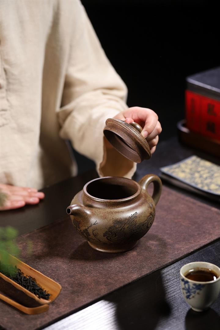 180cc原礦石紅壹馬平川匠心手制茶壺POT8456
