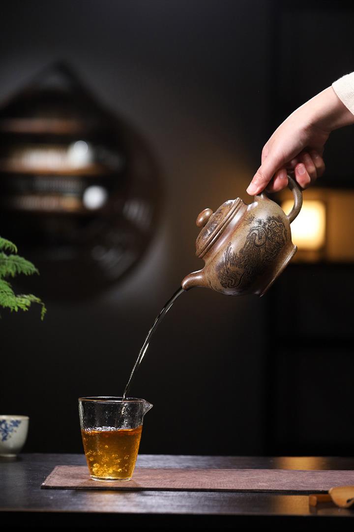 【泥料特點】砂土氣重,似淳實農民,日久使用,漸露鋒芒,養成變化,溫潤莊重。紫砂是壹種雙重氣孔結構的多孔性材質,氣孔微細,密度高。用紫砂壺沏茶,不失原味,且香不渙散,得茶之真香真味。紫砂使用越久,壺身色澤越發光亮照人,氣韻溫雅。紫砂壺長久使用器身會因撫摸擦拭,變得越發溫潤光澤。