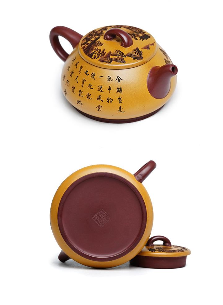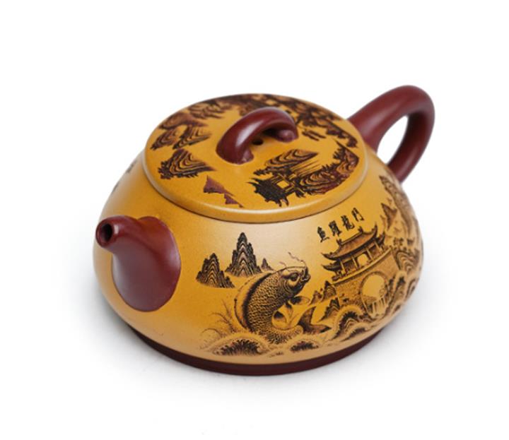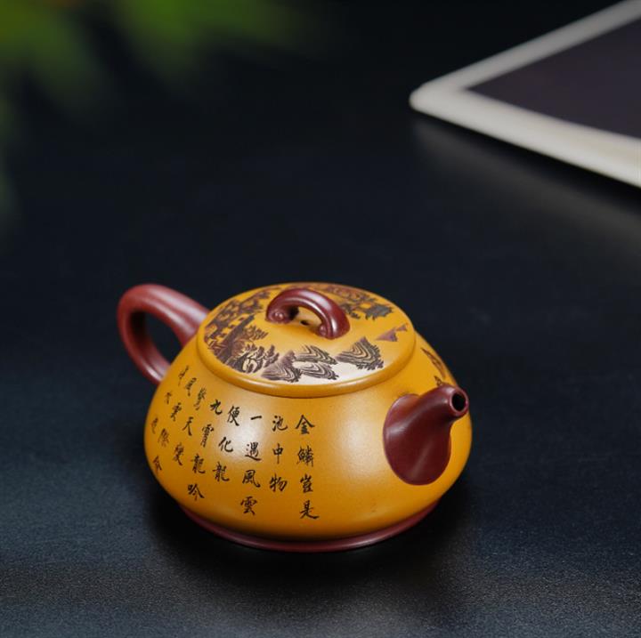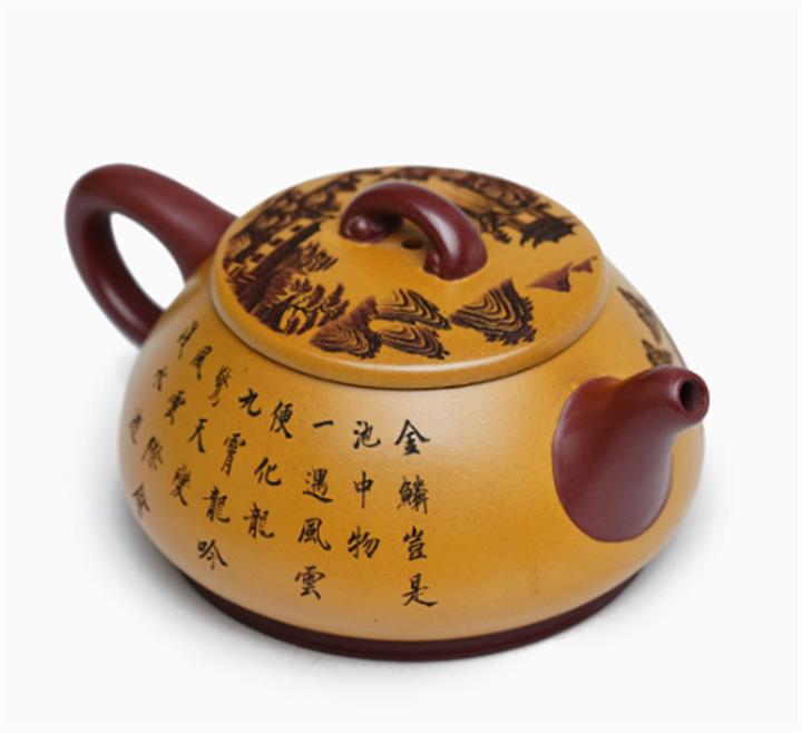 150cc原礦紫泥手工刻繪八方來財茶壺POT8465