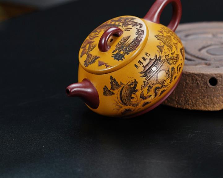 270cc原礦龍血砂魚躍龍門納瓢茶壺POT8454