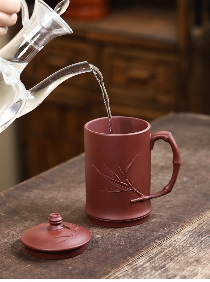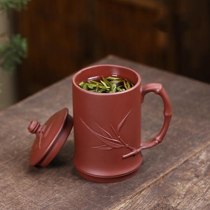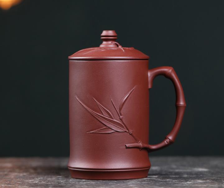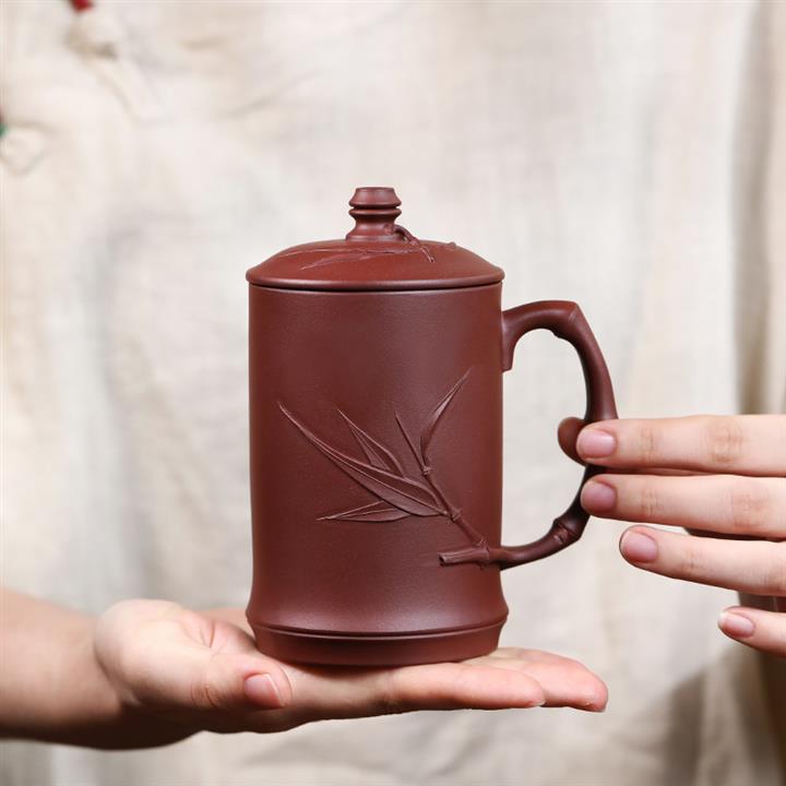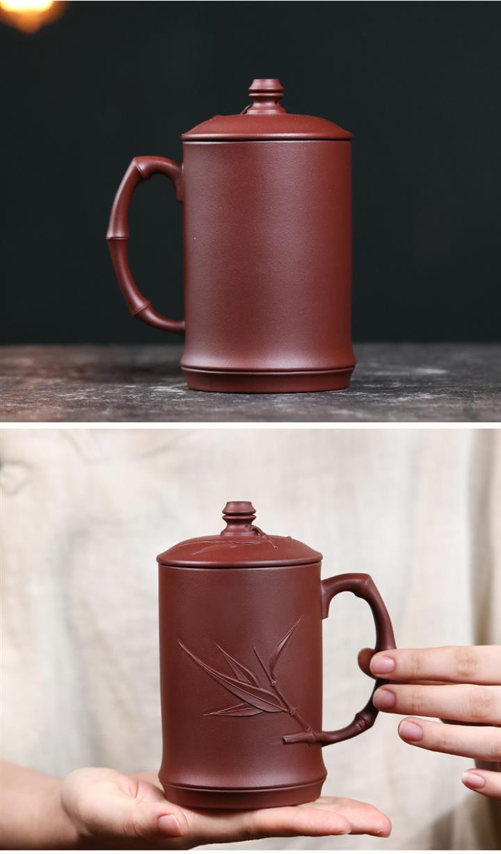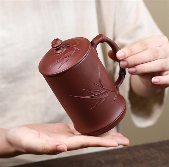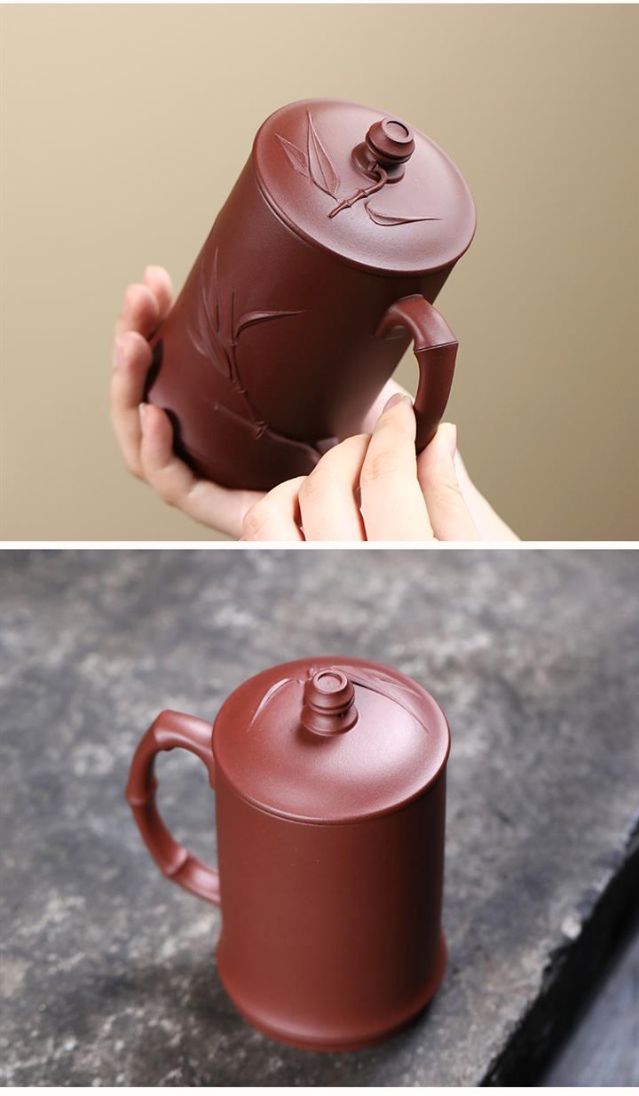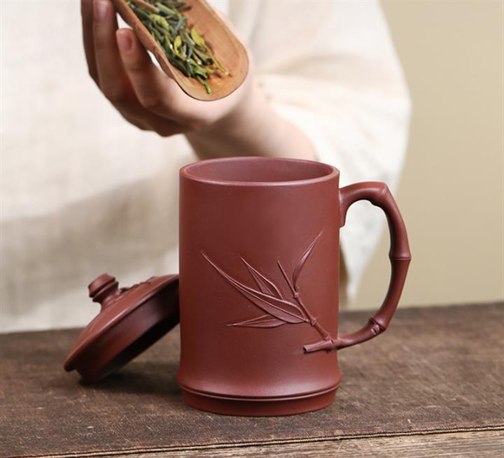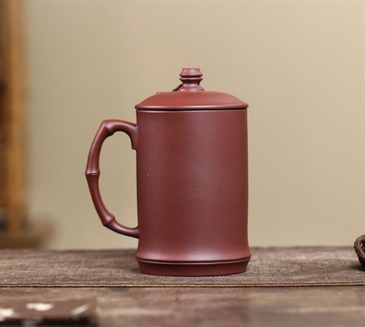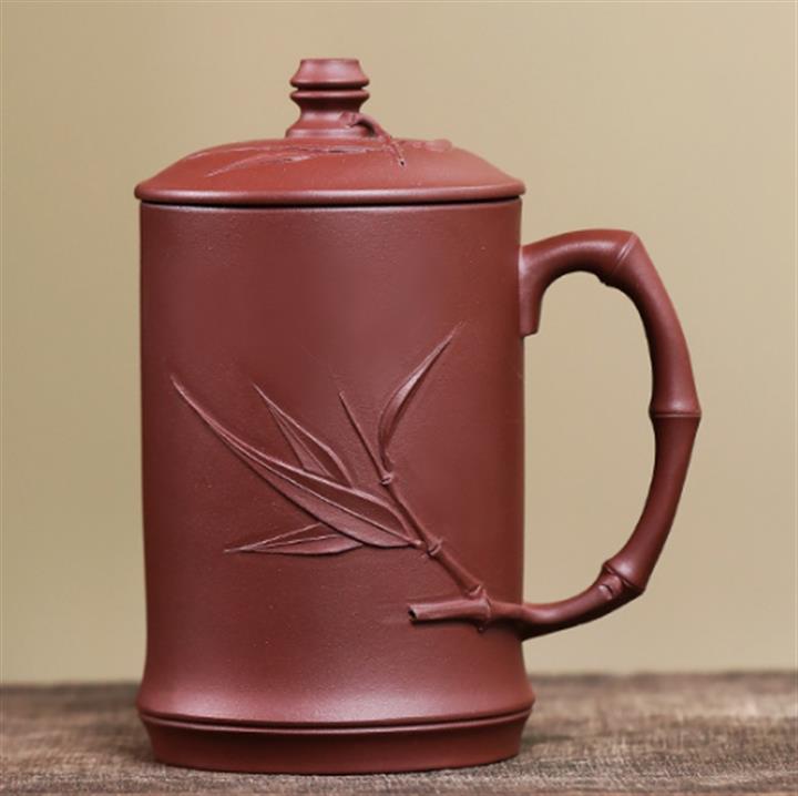 320cc原礦清水泥茶水分離過濾帶蓋高竹節茶杯POT9082