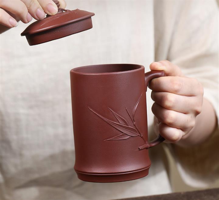 345cc原礦紫泥手工泥繪茶杯POT8463