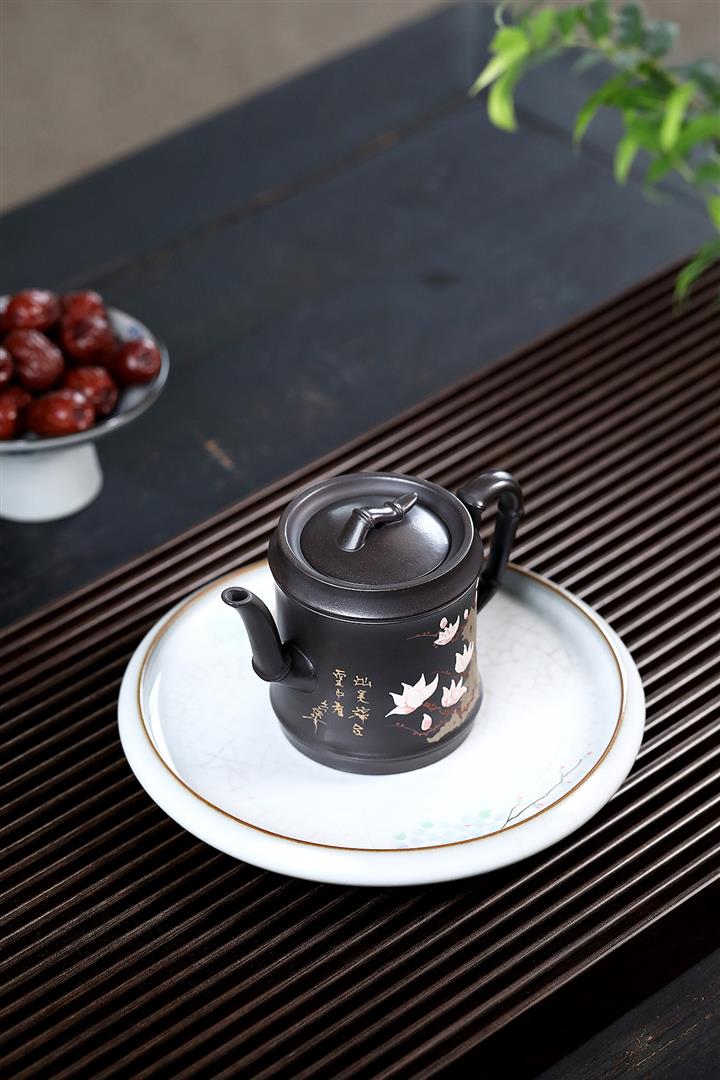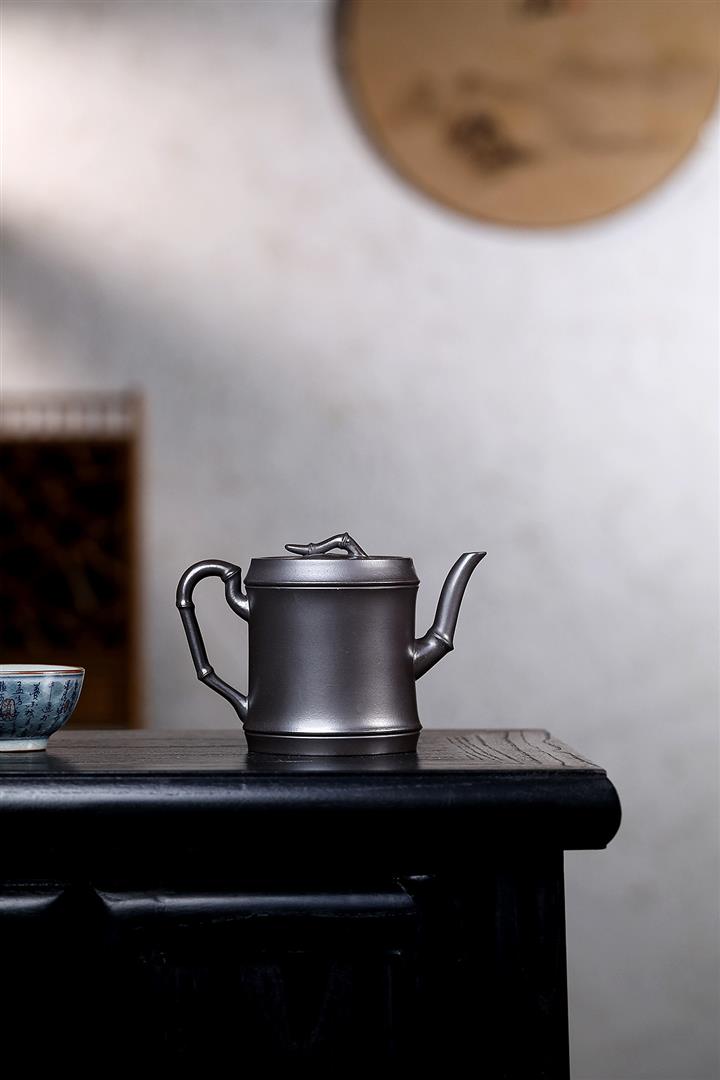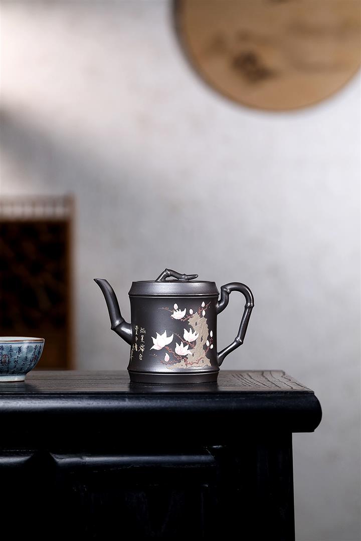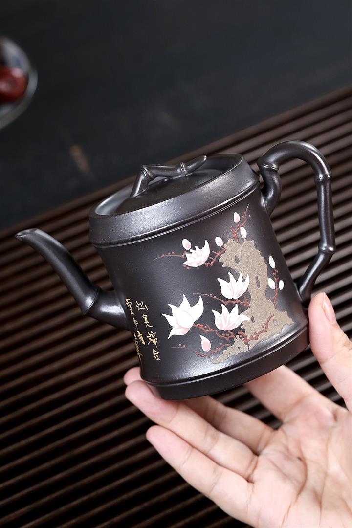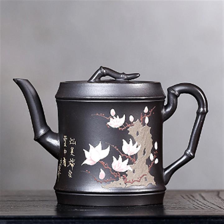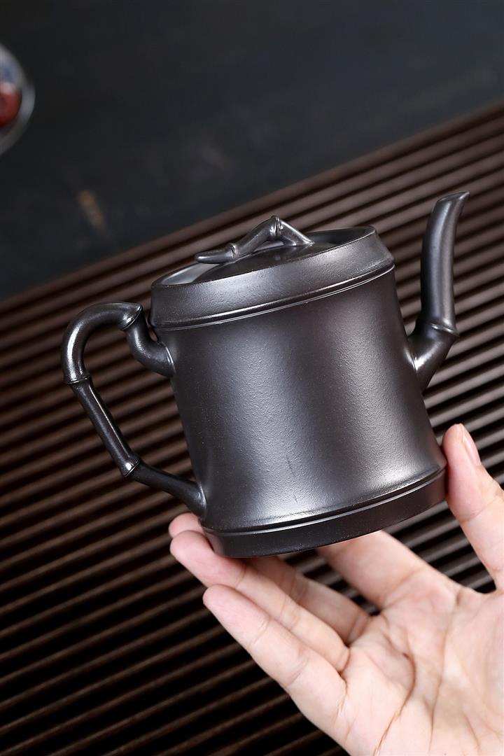 280cc原礦黑泥手工泥繪竹節茶壺POT8464