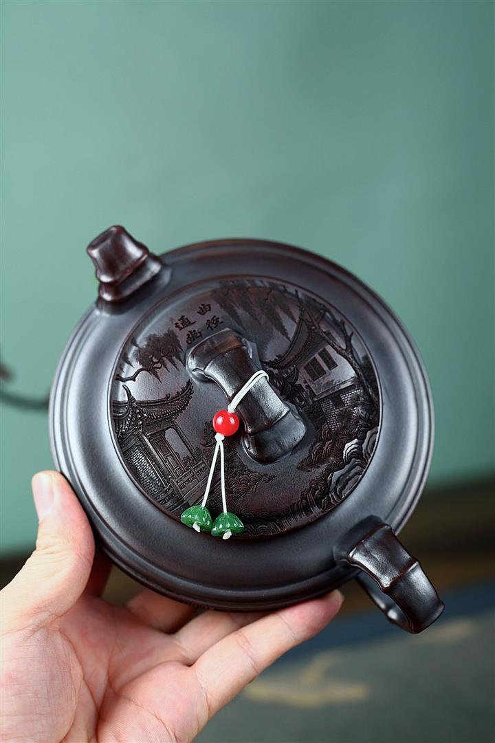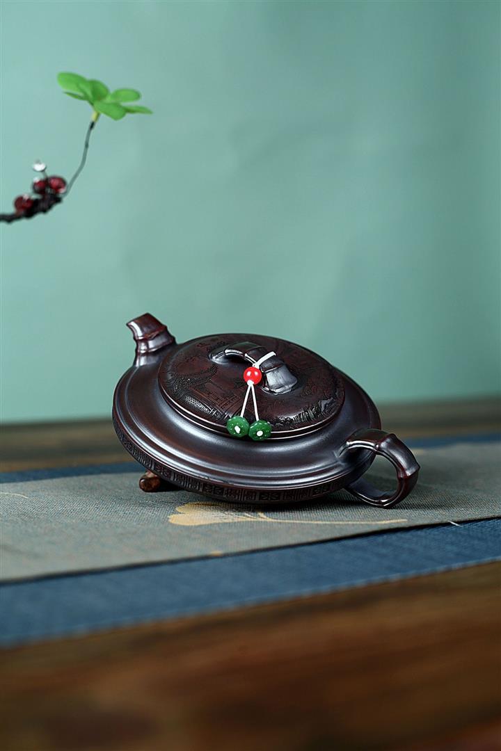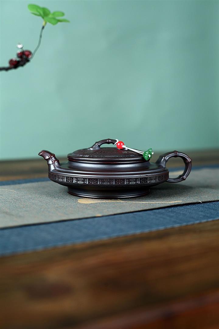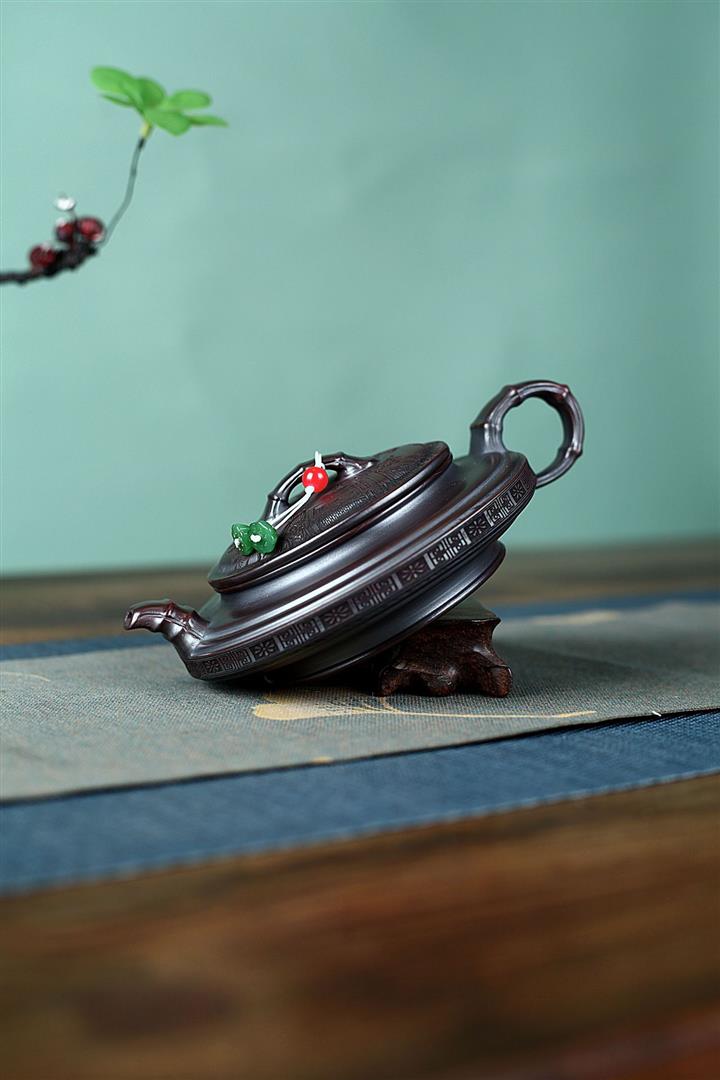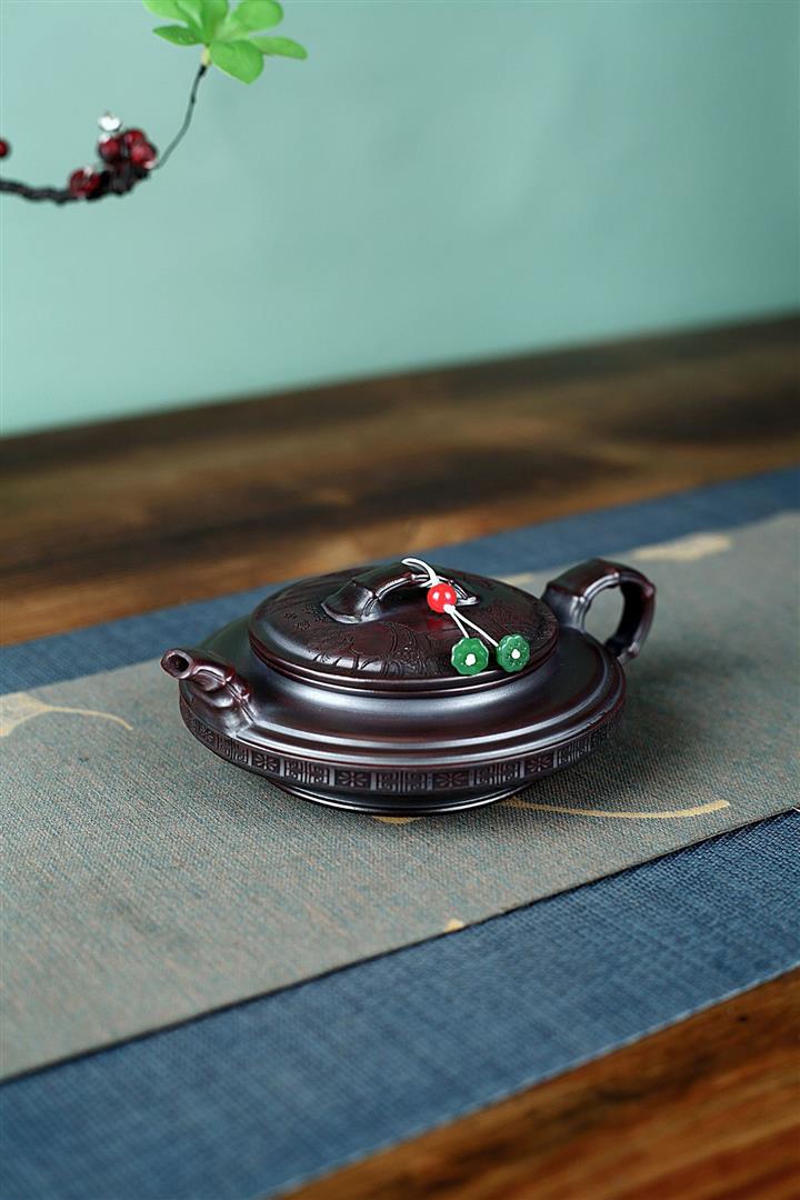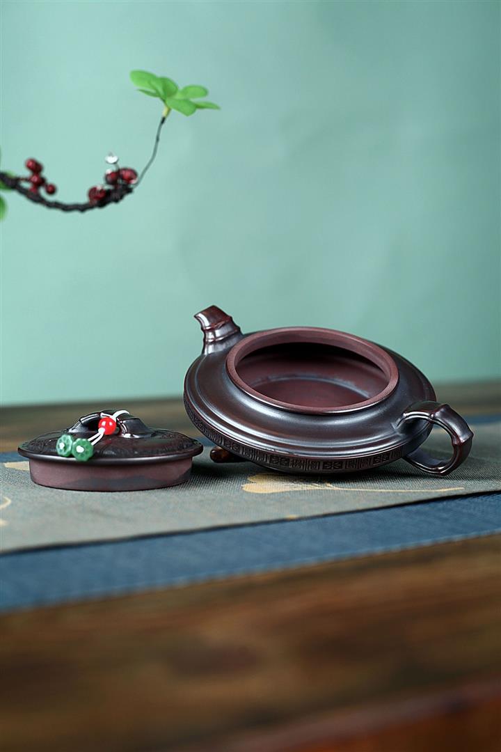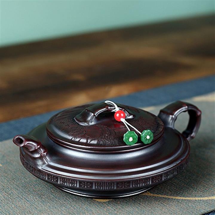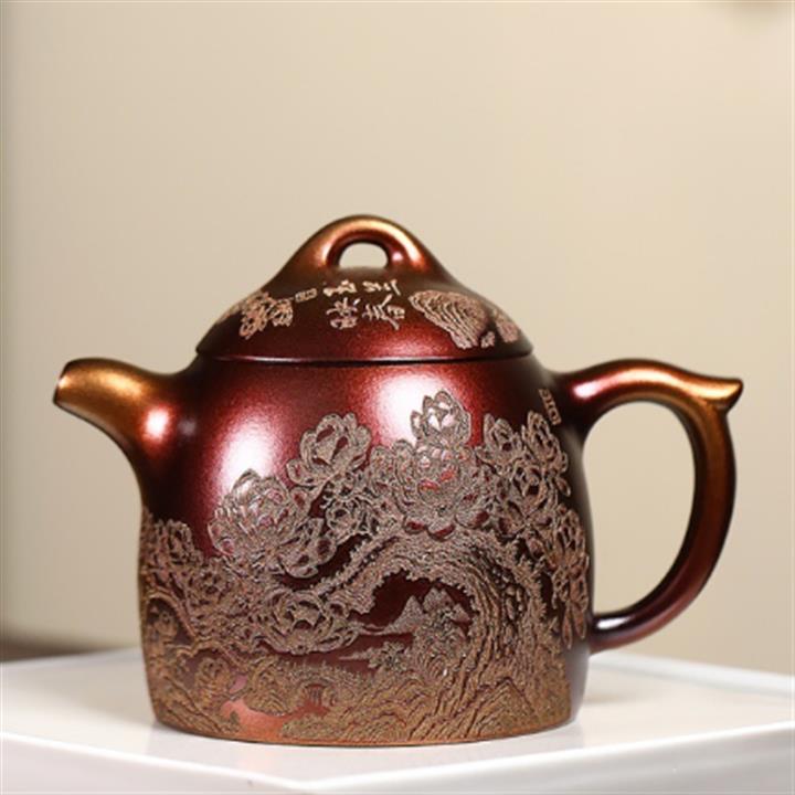 200cc原礦紫朱泥描金漢瓦茶壺POT8468