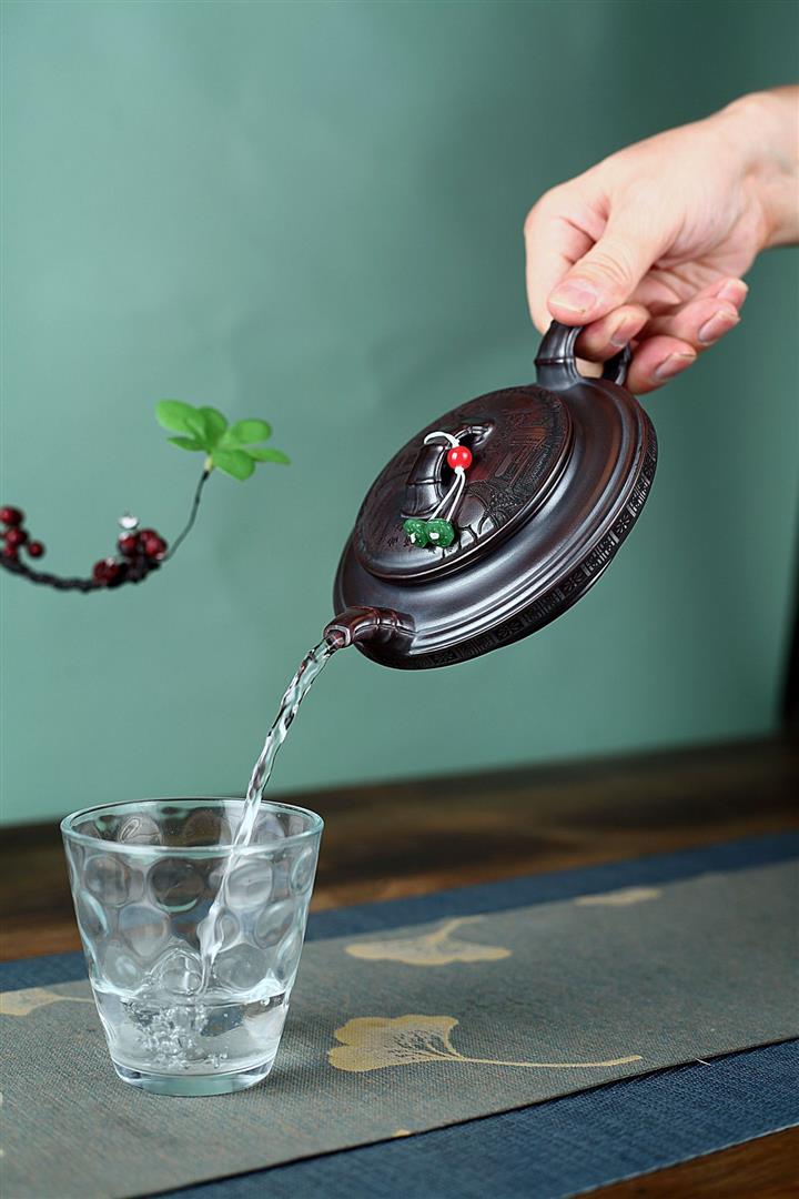 【泥料特點】砂土氣重,似淳實農民,日久使用,漸露鋒芒,養成變化,溫潤莊重。紫砂是壹種雙重氣孔結構的多孔性材質,氣孔微細,密度高。用紫砂壺沏茶,不失原味,且香不渙散,得茶之真香真味。紫砂使用越久,壺身色澤越發光亮照人,氣韻溫雅。紫砂壺長久使用器身會因撫摸擦拭,變得越發溫潤光澤。