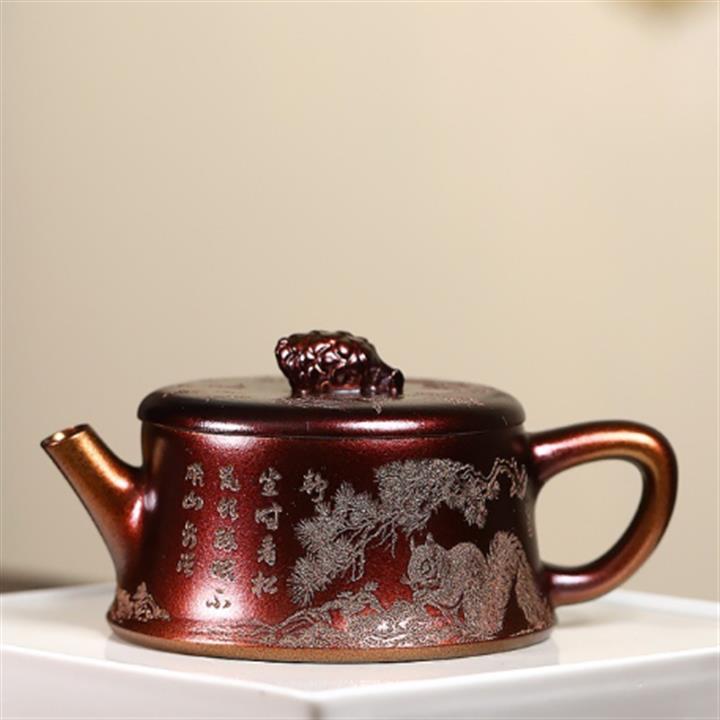 280cc原礦紫泥貝殼燒金砂松趣漢瓦壺POT8479