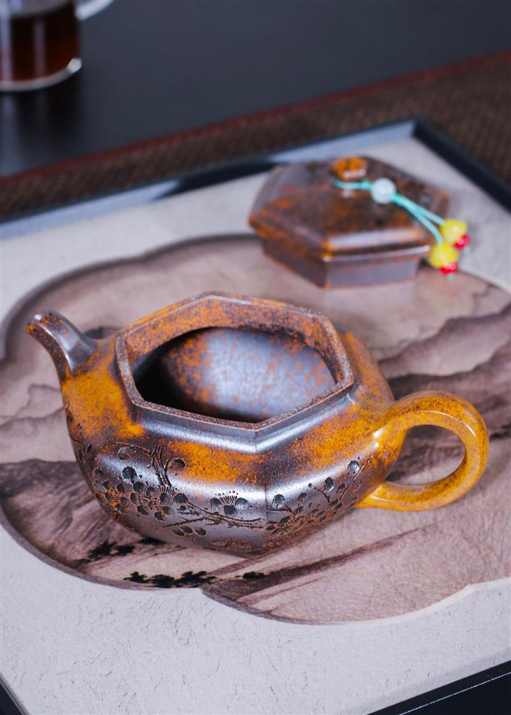 240cc龍骨金砂六方仿古茶壺POT8470