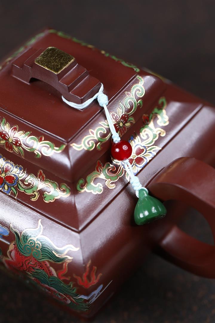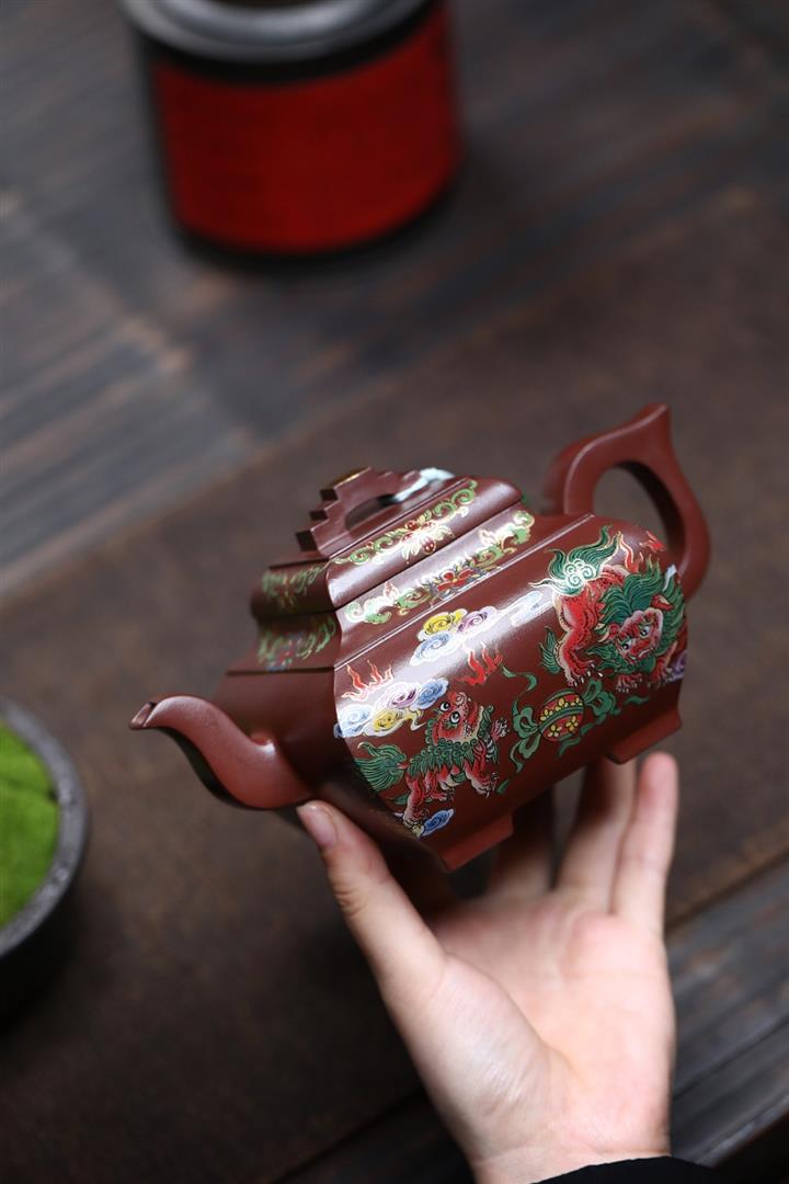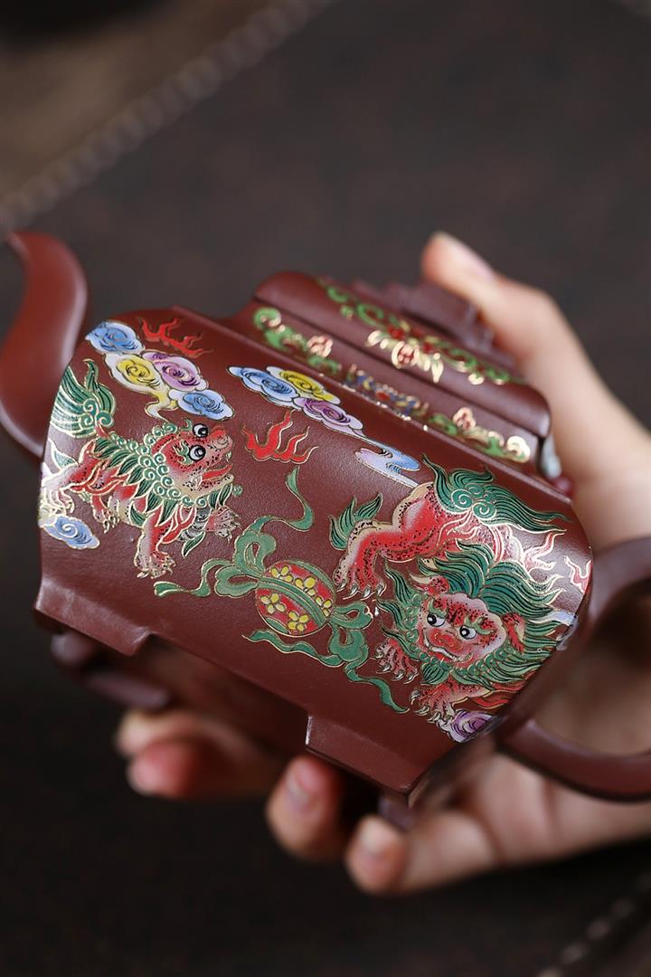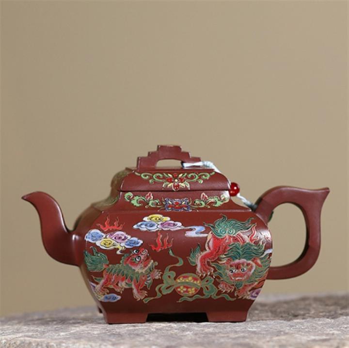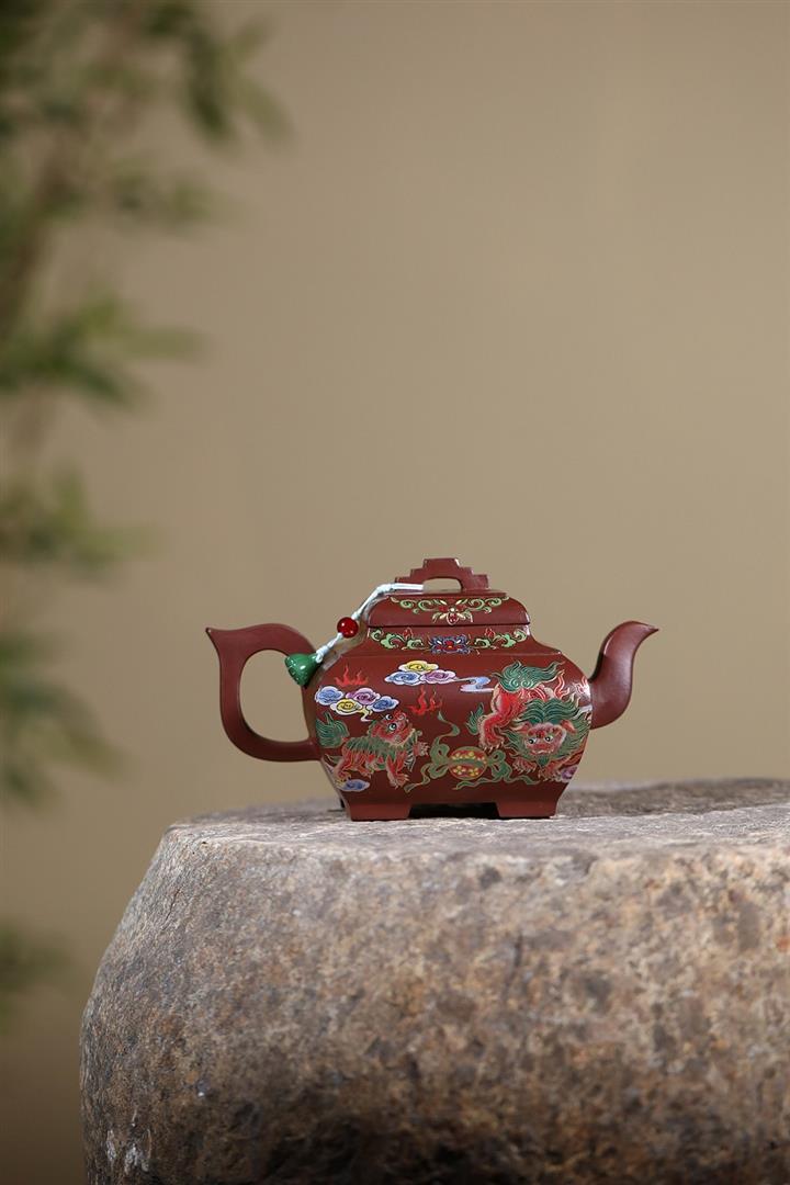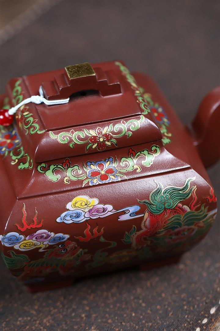 450cc原礦老紫泥琺瑯彩四方瑞獸壺POT8473