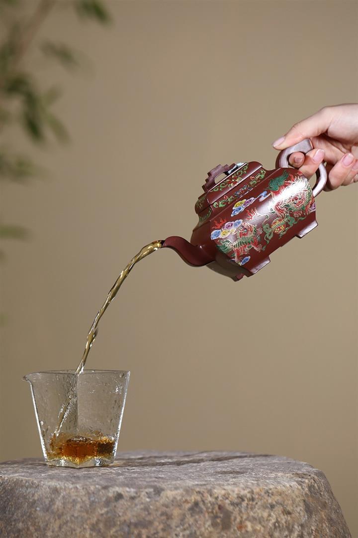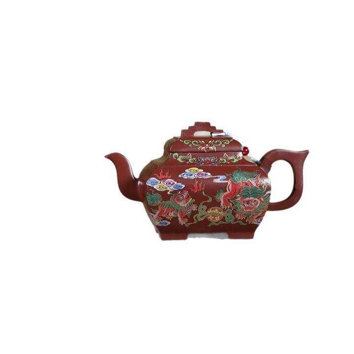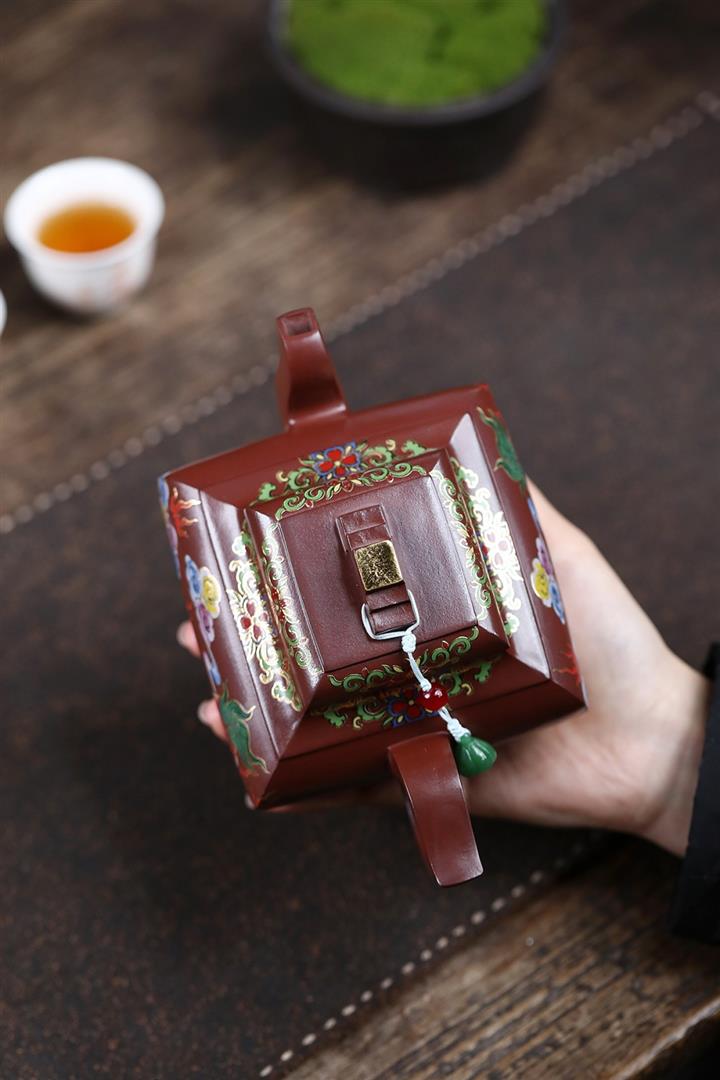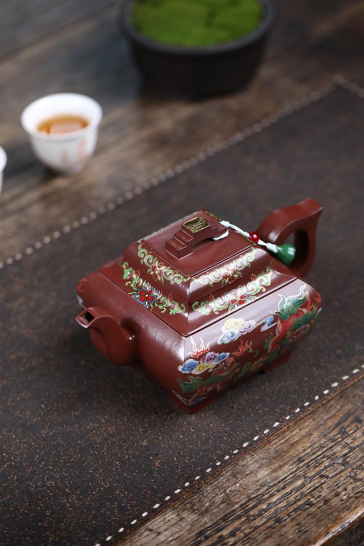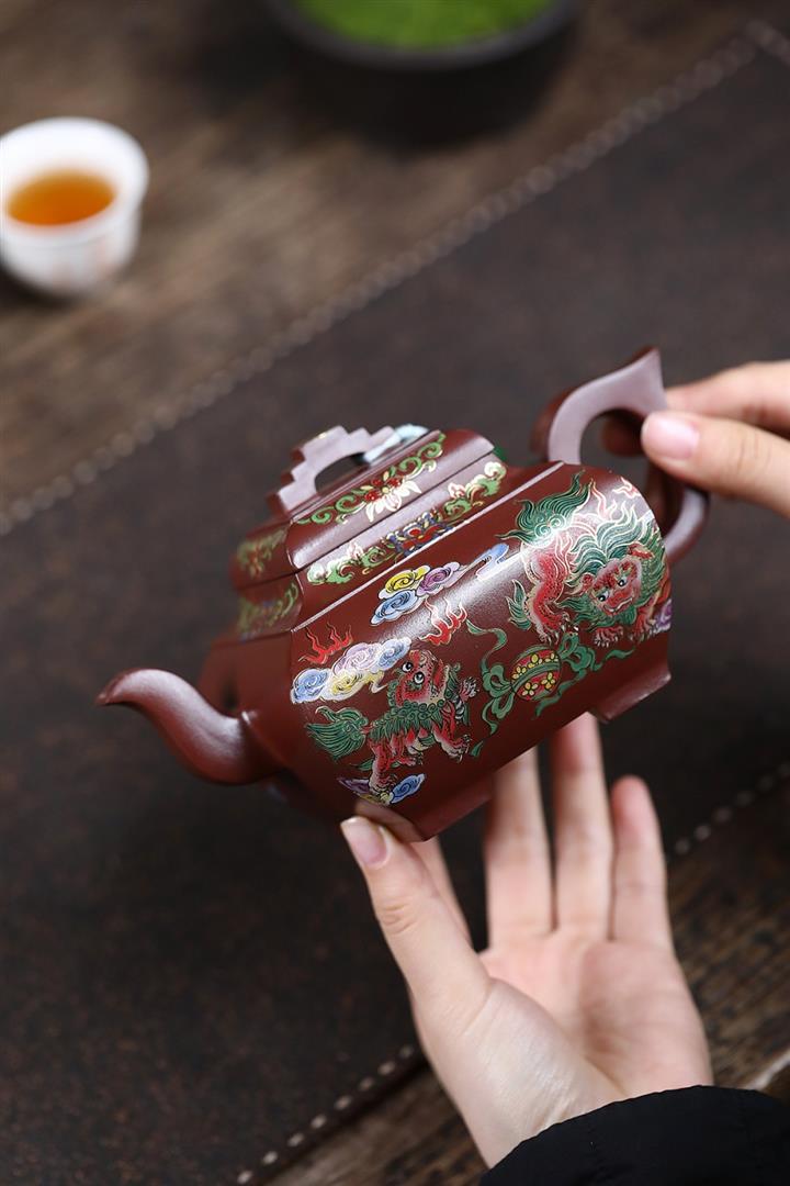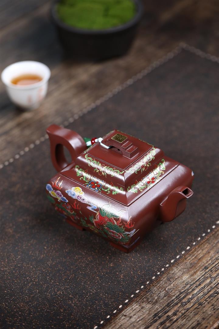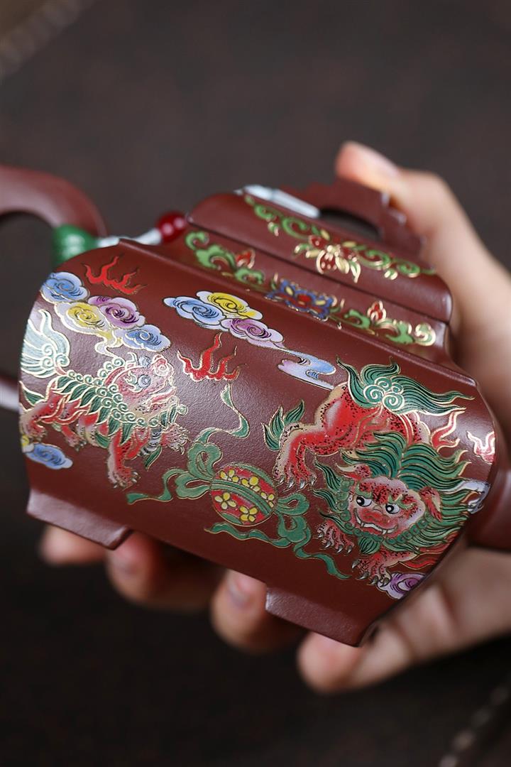 450cc原礦老紫泥琺瑯彩四方瑞獸壺POT8473