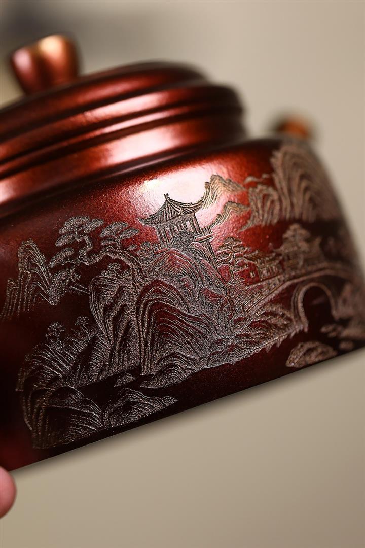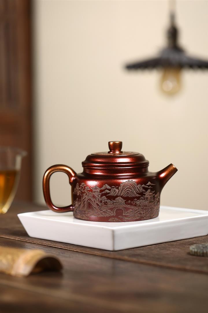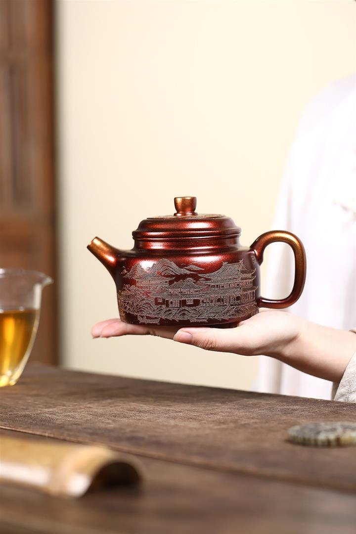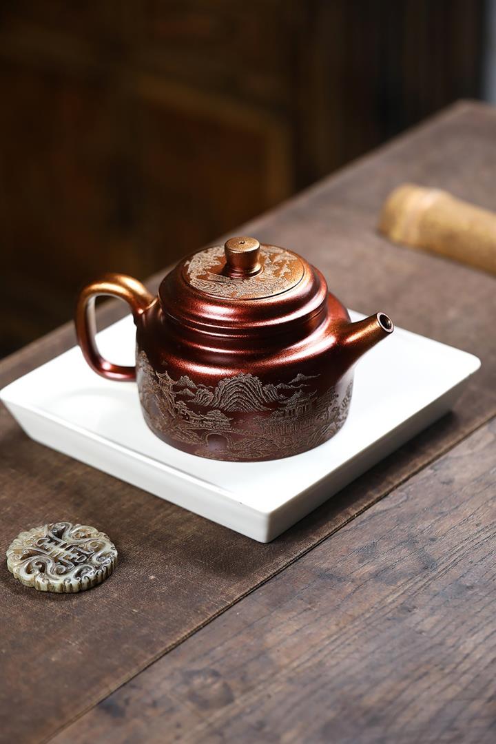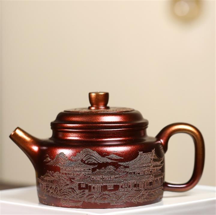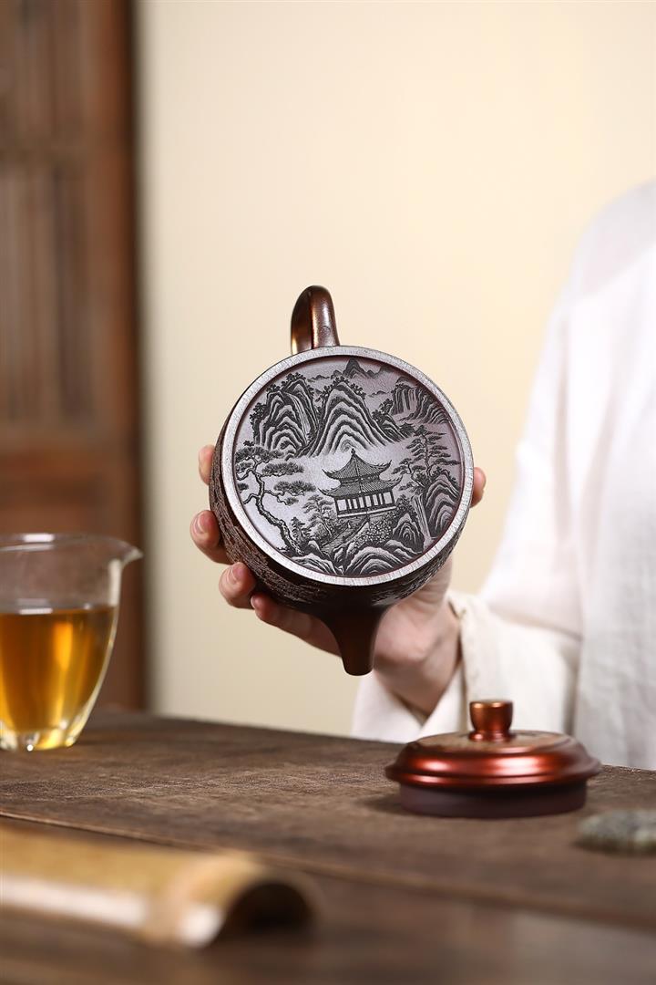340cc原礦紫泥刻繪山水仿古茶壺POT8482