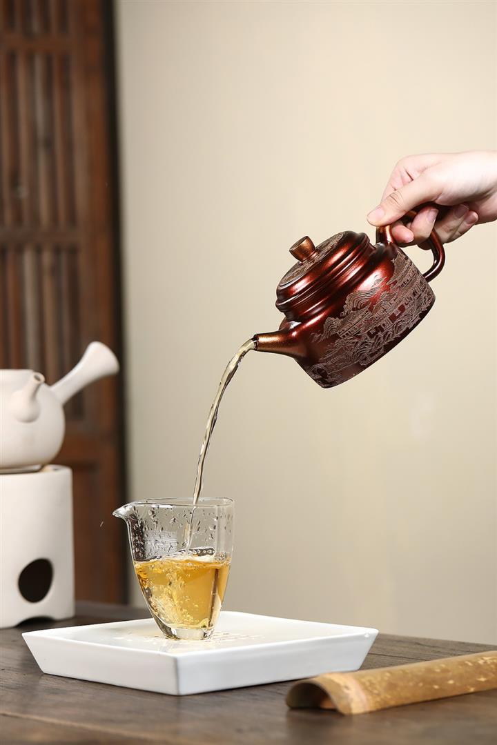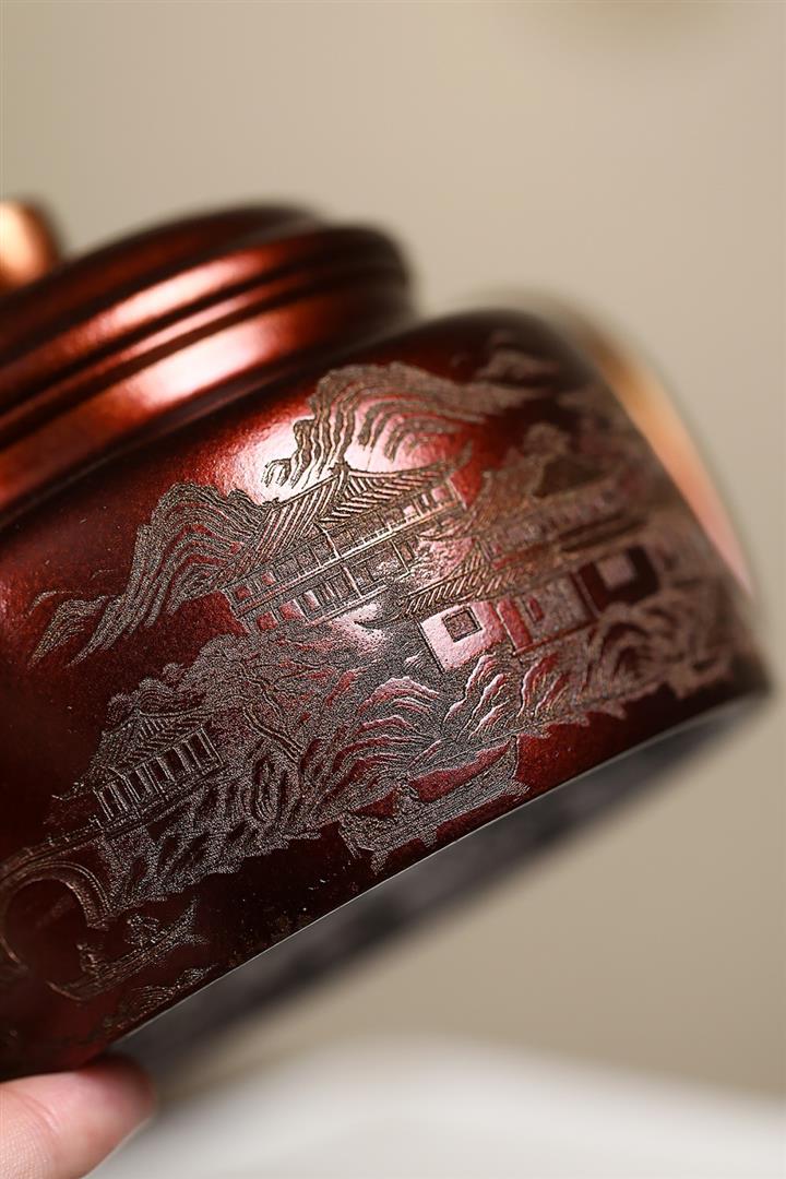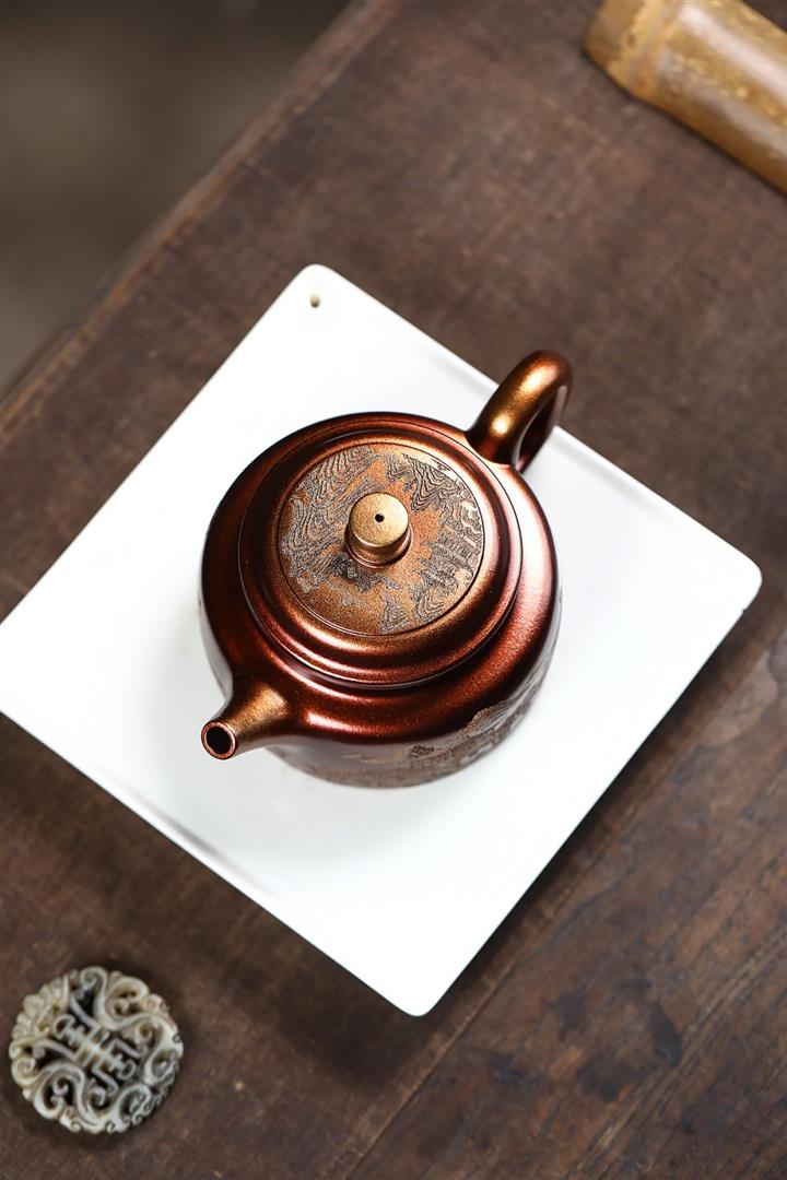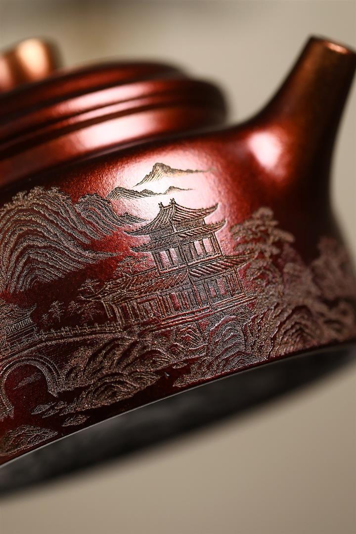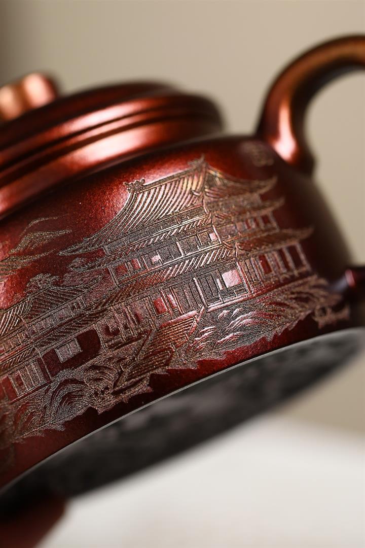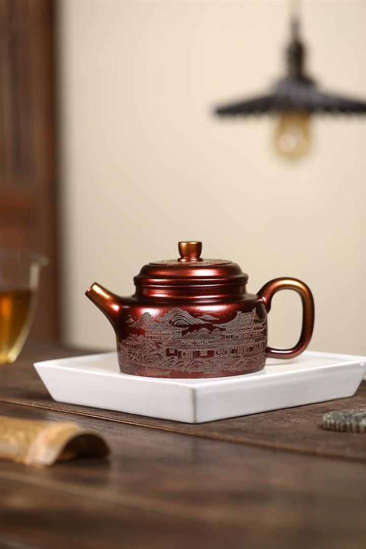 340cc原礦紫泥刻繪山水仿古茶壺POT8482
