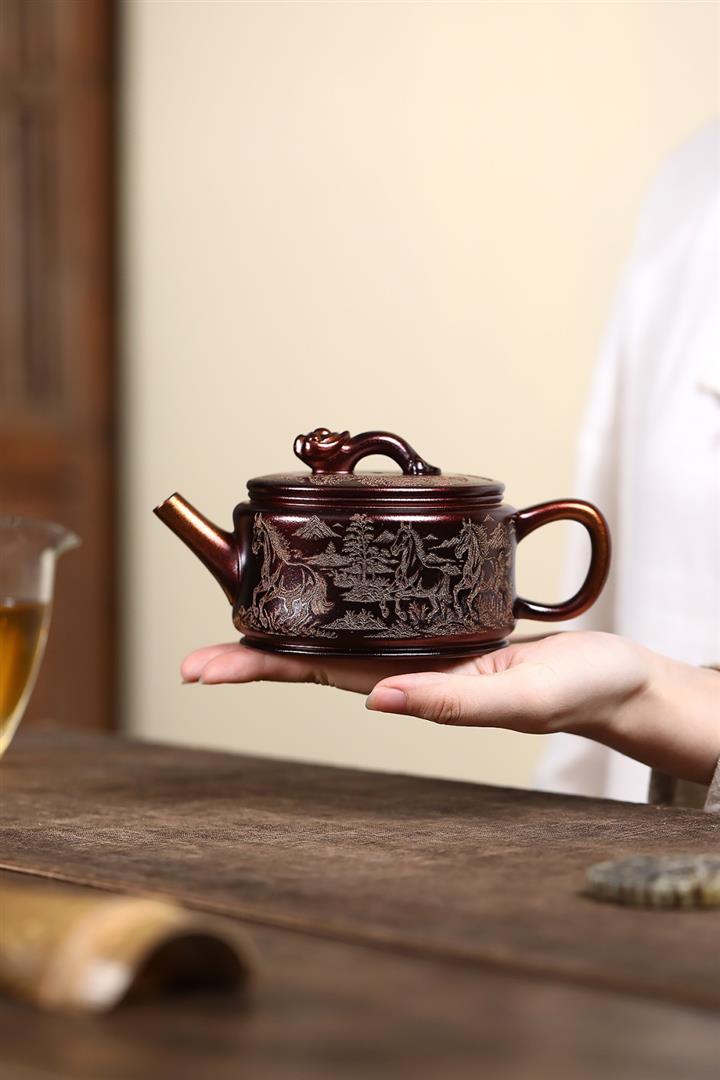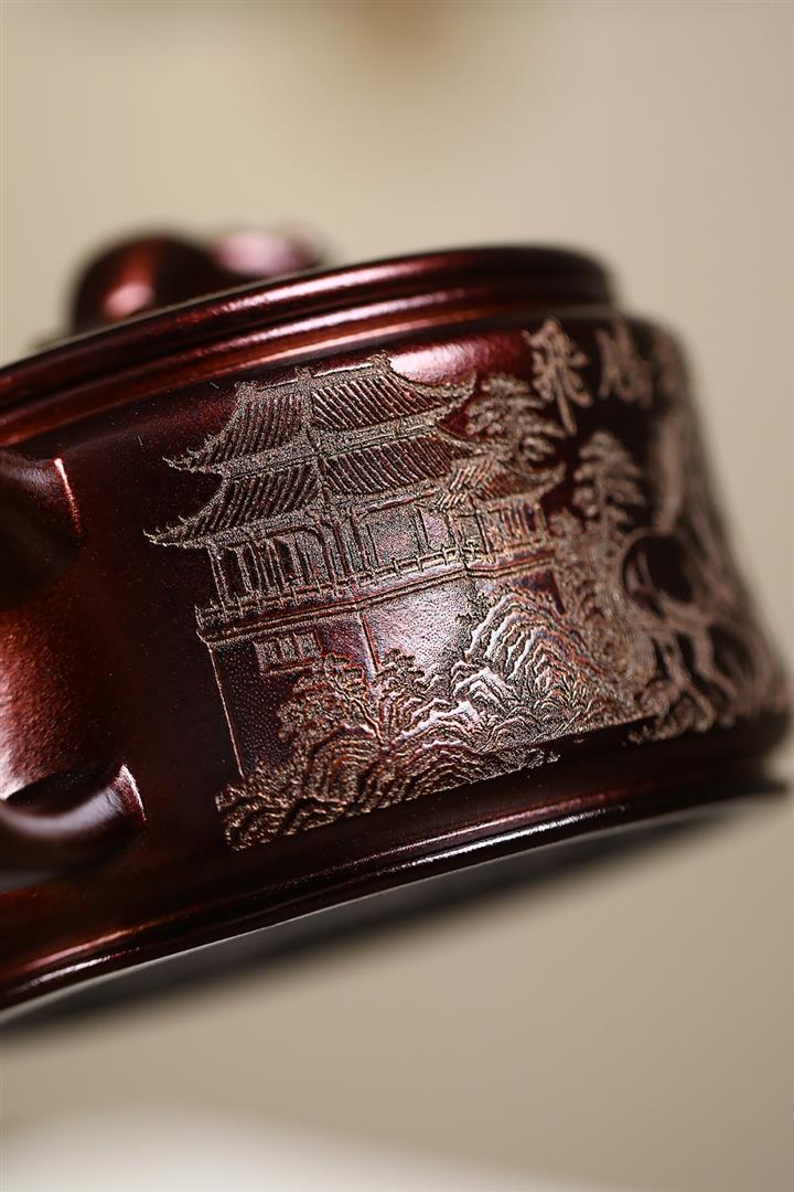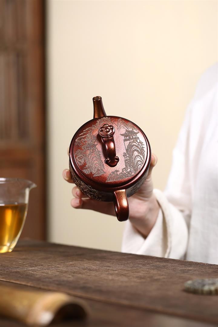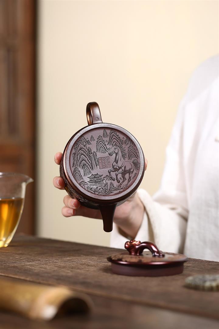 340cc原礦紫泥刻繪山水仿古茶壺POT8482
