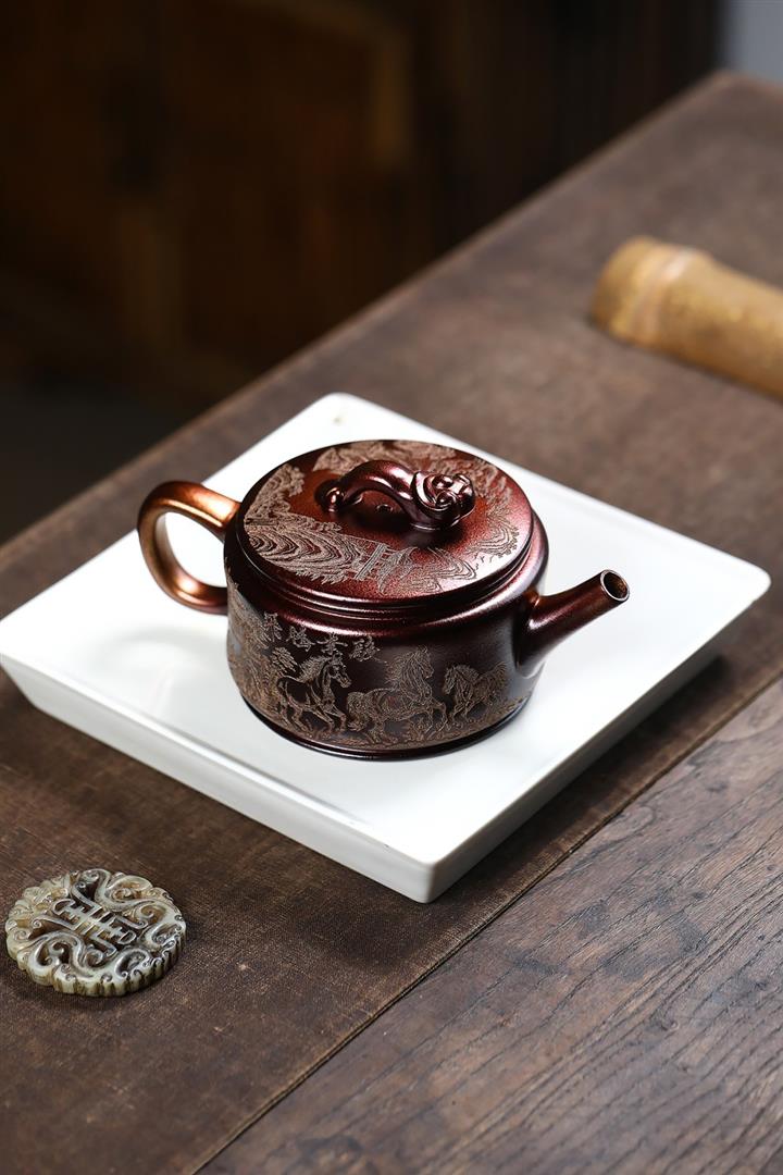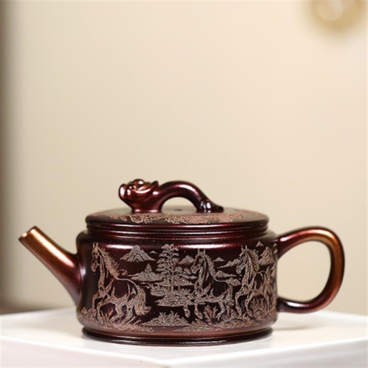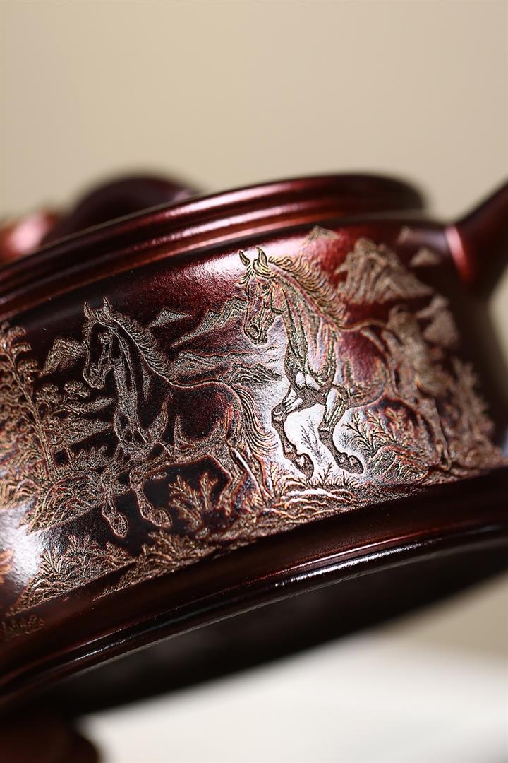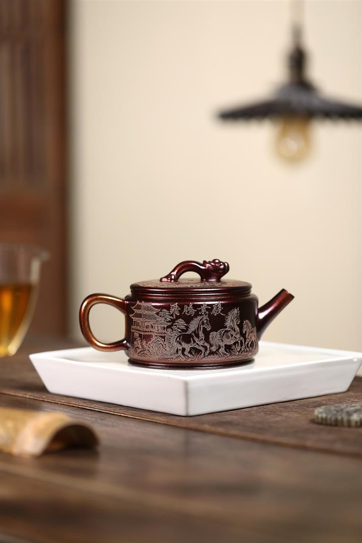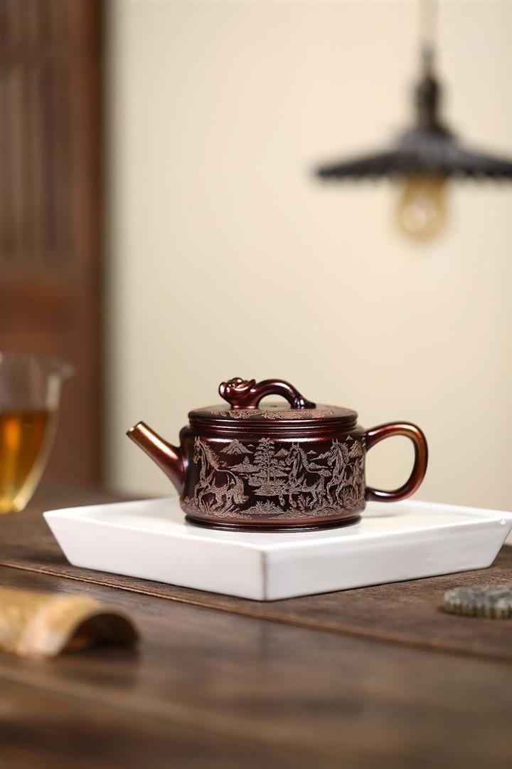 340cc原礦紫泥刻繪山水仿古茶壺POT8482