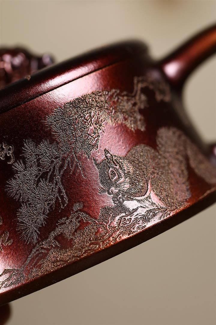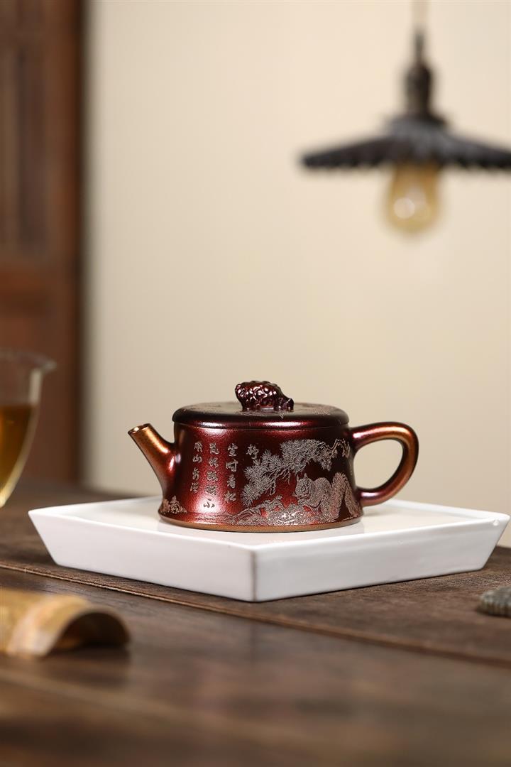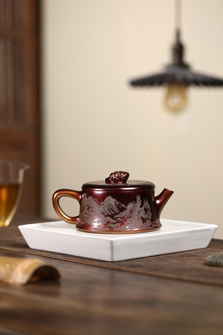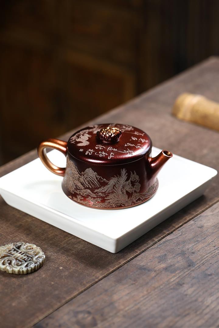 340cc原礦紫泥刻繪山水仿古茶壺POT8482