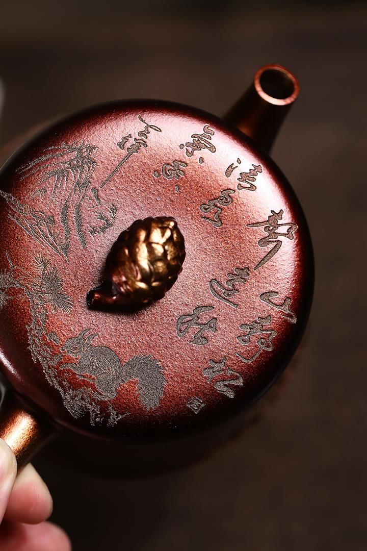 280cc原礦紫泥貝殼燒金砂松趣漢瓦壺POT8479