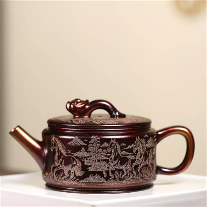 330cc原礦貝殼燒馬到成功如意漢瓦茶壺POT8489