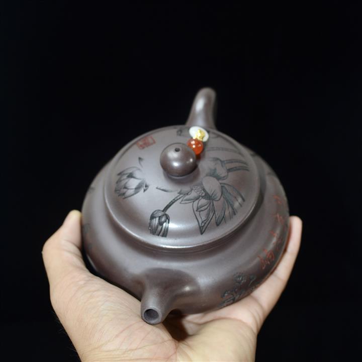 340cc原礦紫泥刻繪山水仿古茶壺POT8482