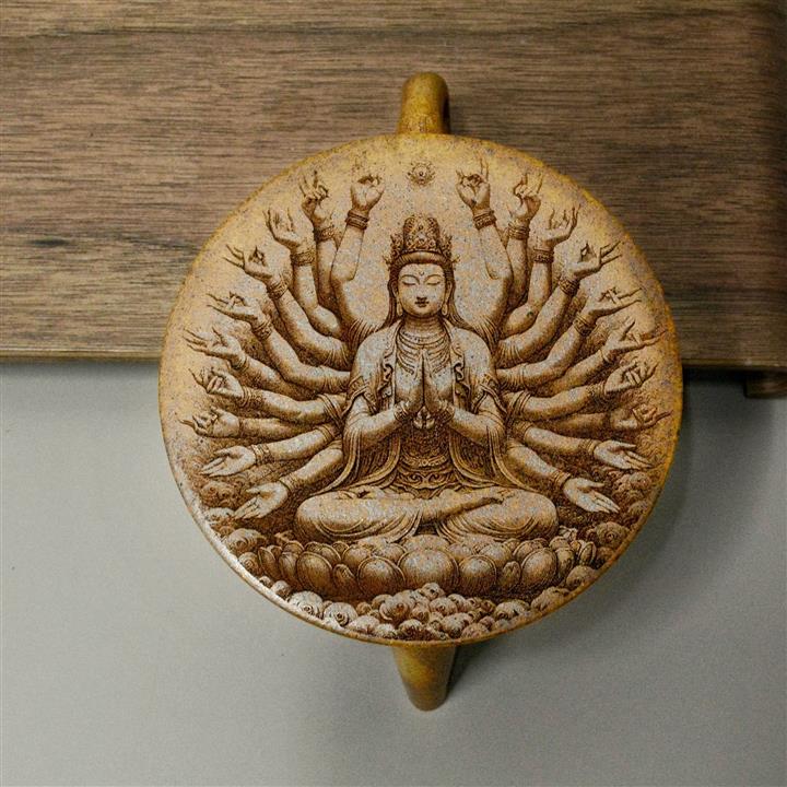 330cc原礦貝殼燒馬到成功如意漢瓦茶壺POT8489