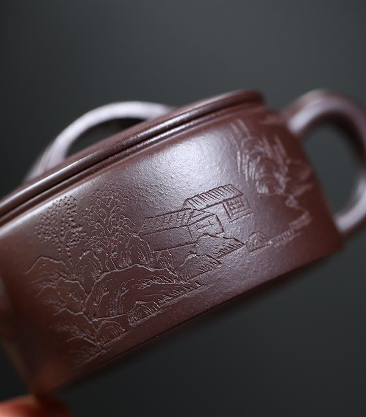 220cc原礦綠泥刻繪荷趣明爐茶壺POT8498