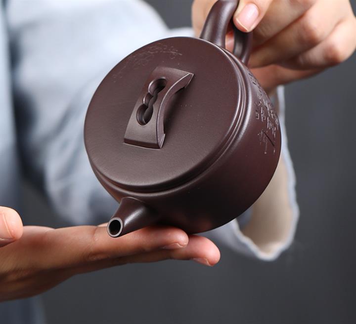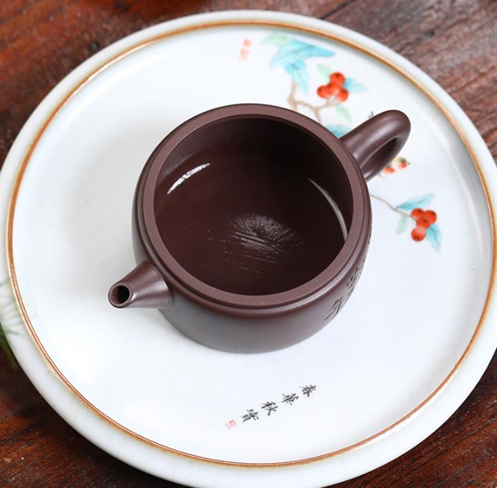 【泥料特點】砂土氣重,似淳實農民,日久使用,漸露鋒芒,養成變化,溫潤莊重。紫砂是壹種雙重氣孔結構的多孔性材質,氣孔微細,密度高。用紫砂壺沏茶,不失原味,且香不渙散,得茶之真香真味。紫砂使用越久,壺身色澤越發光亮照人,氣韻溫雅。紫砂壺長久使用器身會因撫摸擦拭,變得越發溫潤光澤。