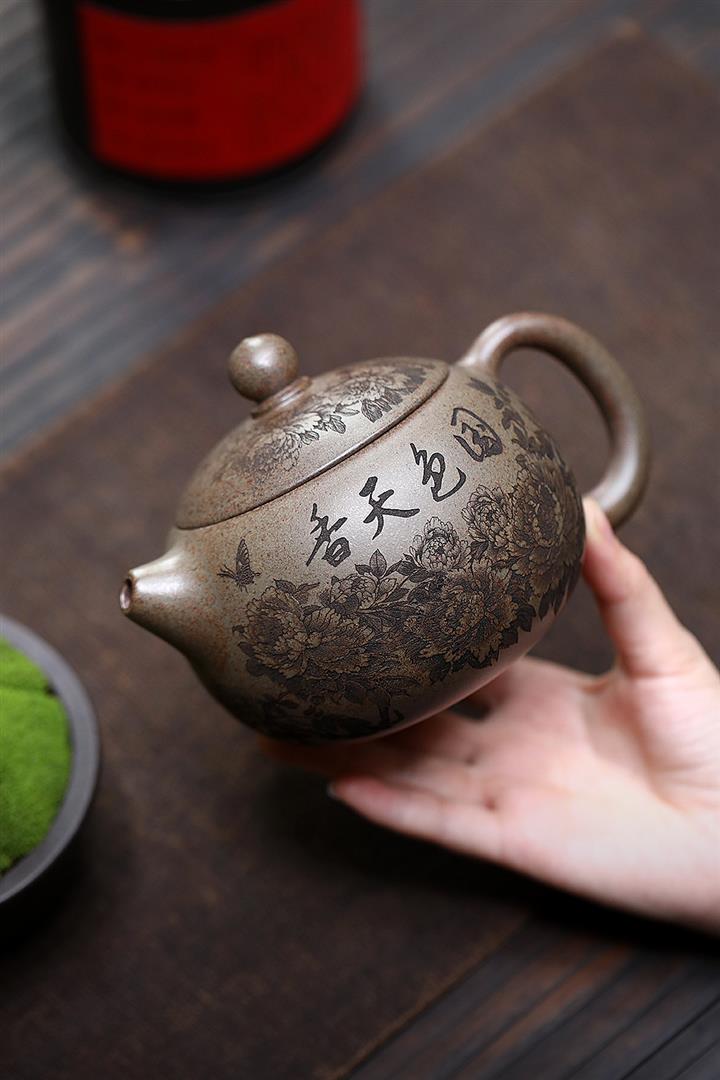 【作品介紹】此款壺形線條流暢,壺把,壺嘴,壺身壹氣呵成栩栩如生,是收藏把玩的好壺,泥料色澤古樸典雅,日久使用,漸露鋒芒,養成變化快,溫潤莊重,用其泡茶,使用的年代久,壺身就溫潤,泡出來的茶湯也就醇郁芳馨。