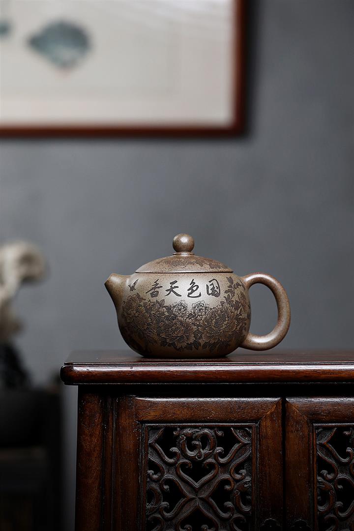 【泥料特點】砂土氣重,似淳實農民,日久使用,漸露鋒芒,養成變化,溫潤莊重。紫砂是壹種雙重氣孔結構的多孔性材質,氣孔微細,密度高。用紫砂壺沏茶,不失原味,且香不渙散,得茶之真香真味。紫砂使用越久,壺身色澤越發光亮照人,氣韻溫雅。紫砂壺長久使用器身會因撫摸擦拭,變得越發溫潤光澤。