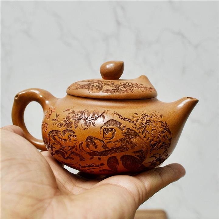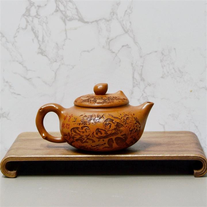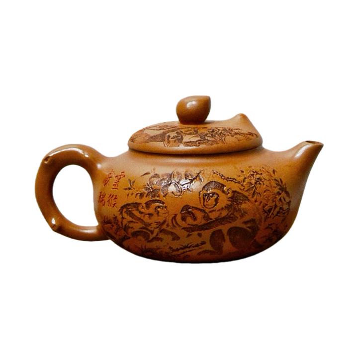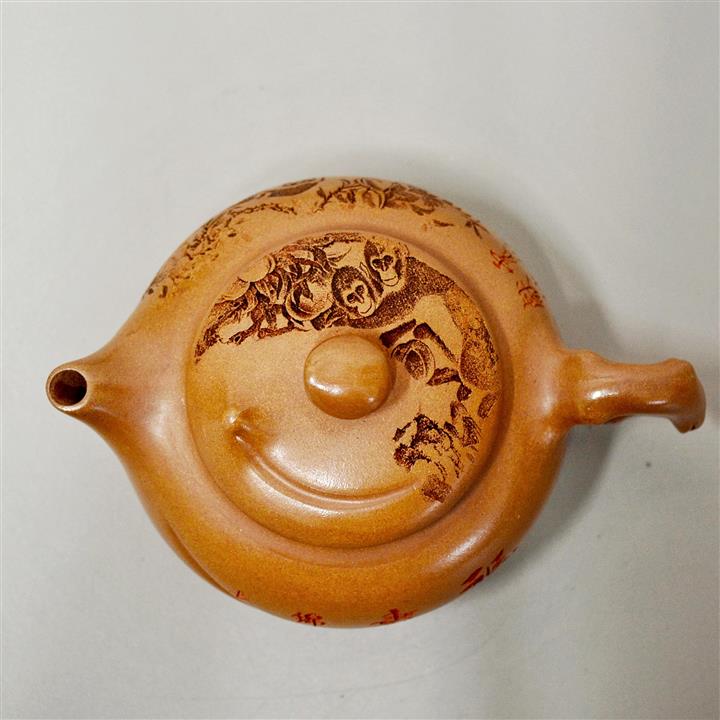 200cc原礦赤金朱泥靈猴獻瑞茶壺POT8513