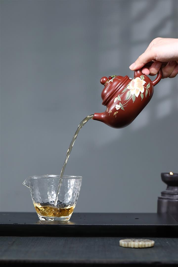 【泥料特點】砂土氣重,似淳實農民,日久使用,漸露鋒芒,養成變化,溫潤莊重。紫砂是壹種雙重氣孔結構的多孔性材質,氣孔微細,密度高。用紫砂壺沏茶,不失原味,且香不渙散,得茶之真香真味。紫砂使用越久,壺身色澤越發光亮照人,氣韻溫雅。紫砂壺長久使用器身會因撫摸擦拭,變得越發溫潤光澤。
