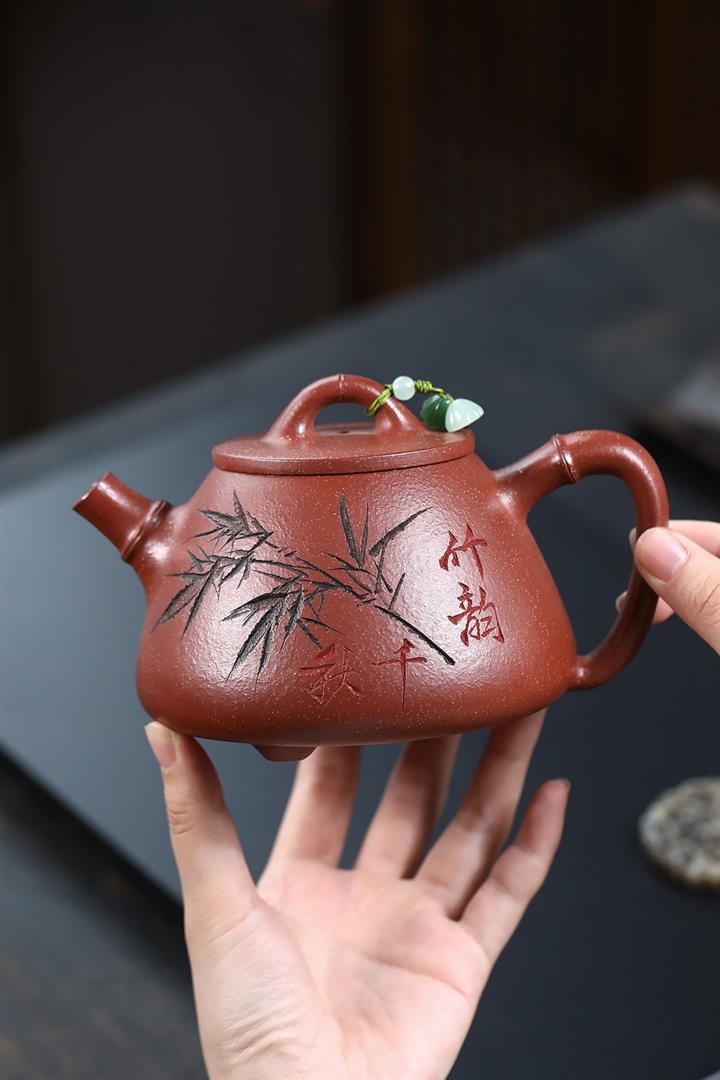 【作品介紹】此款壺形線條流暢,壺把,壺嘴,壺身壹氣呵成栩栩如生,是收藏把玩的好壺,泥料色澤古樸典雅,日久使用,漸露鋒芒,養成變化快,溫潤莊重,用其泡茶,使用的年代久,壺身就溫潤,泡出來的茶湯也就醇郁芳馨。