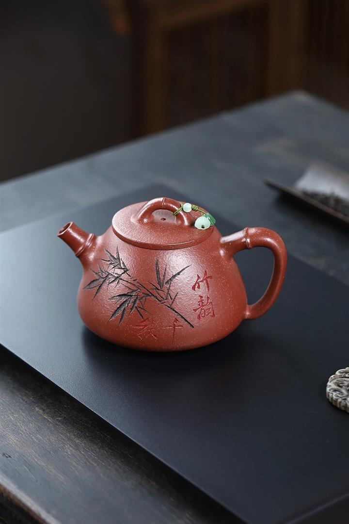 330cc原礦綠泥竹林隱士竹段茶壺POT8528