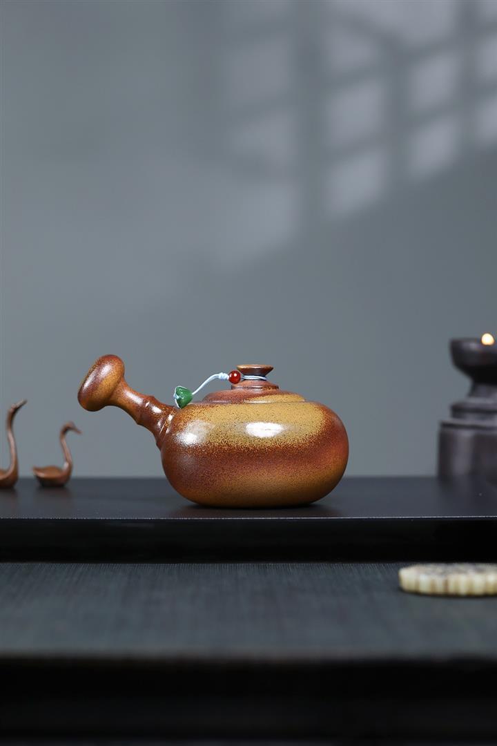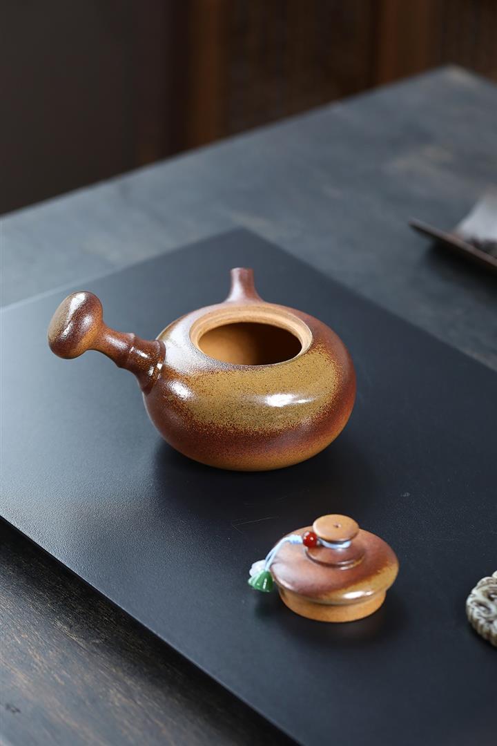 350cc原礦黃金段泥柴燒浴火素潘茶壺POT8529