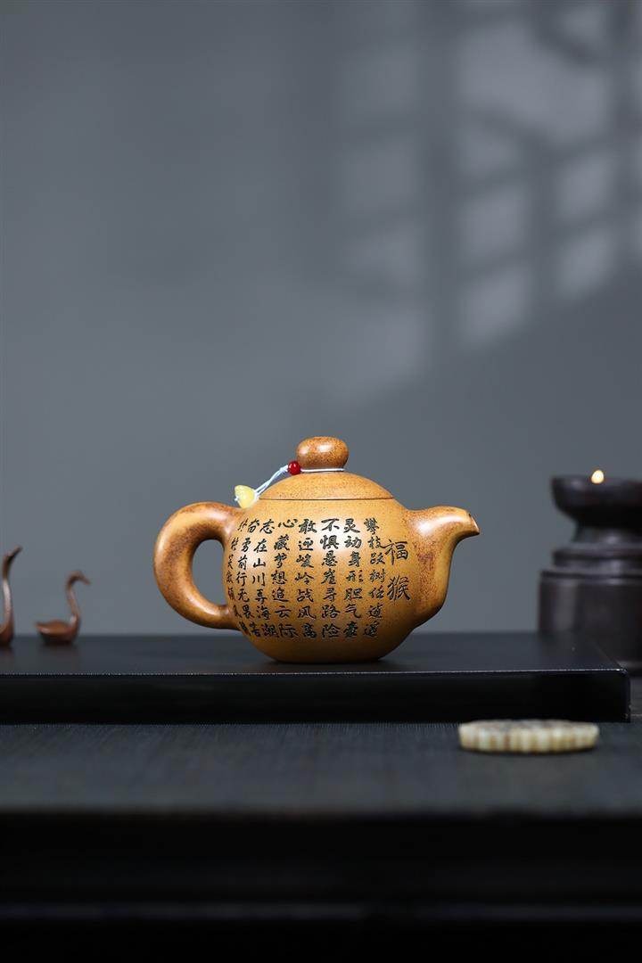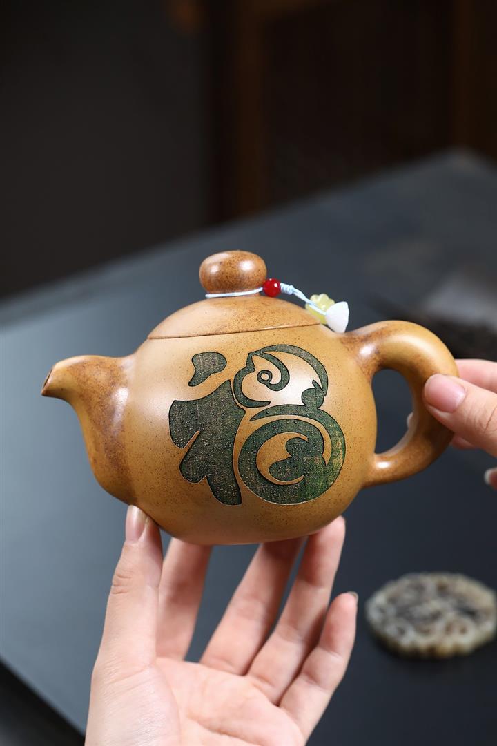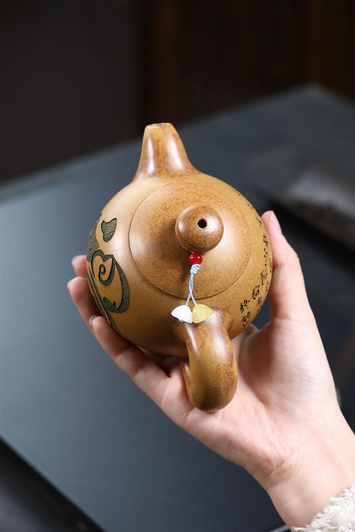 【作品介紹】此款壺形線條流暢,壺把,壺嘴,壺身壹氣呵成栩栩如生,是收藏把玩的好壺,泥料色澤古樸典雅,日久使用,漸露鋒芒,養成變化快,溫潤莊重,用其泡茶,使用的年代久,壺身就溫潤,泡出來的茶湯也就醇郁芳馨。