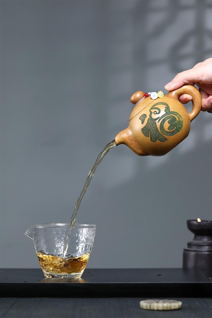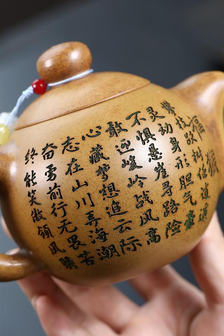 【泥料特點】砂土氣重,似淳實農民,日久使用,漸露鋒芒,養成變化,溫潤莊重。紫砂是壹種雙重氣孔結構的多孔性材質,氣孔微細,密度高。用紫砂壺沏茶,不失原味,且香不渙散,得茶之真香真味。紫砂使用越久,壺身色澤越發光亮照人,氣韻溫雅。紫砂壺長久使用器身會因撫摸擦拭,變得越發溫潤光澤。
