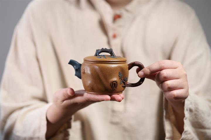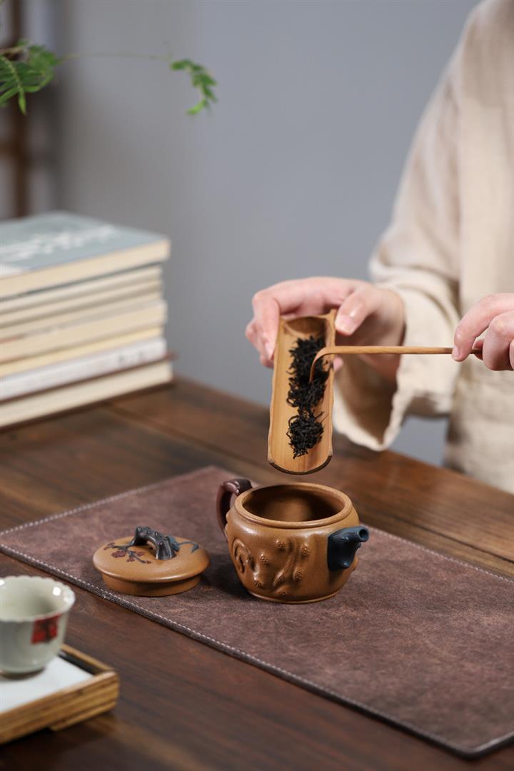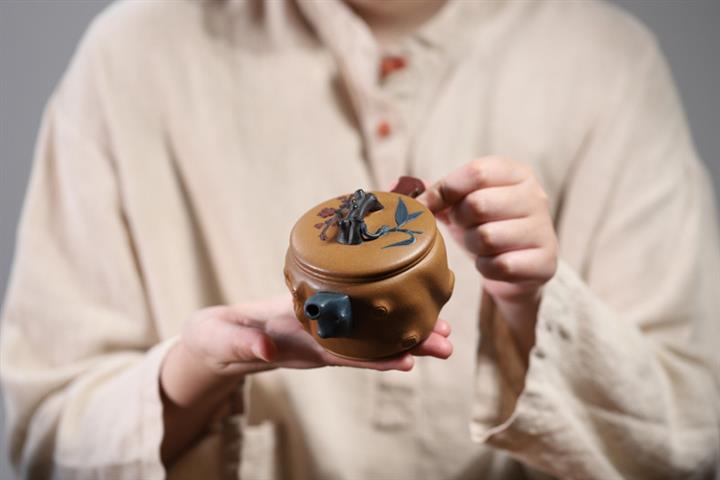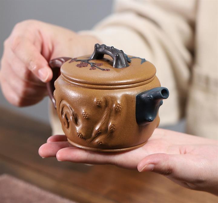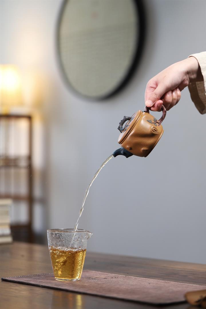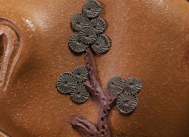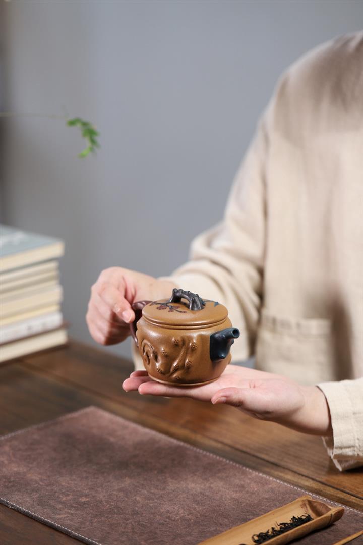 【泥料特點】砂土氣重,似淳實農民,日久使用,漸露鋒芒,養成變化,溫潤莊重。紫砂是壹種雙重氣孔結構的多孔性材質,氣孔微細,密度高。用紫砂壺沏茶,不失原味,且香不渙散,得茶之真香真味。紫砂使用越久,壺身色澤越發光亮照人,氣韻溫雅。紫砂壺長久使用器身會因撫摸擦拭,變得越發溫潤光澤。