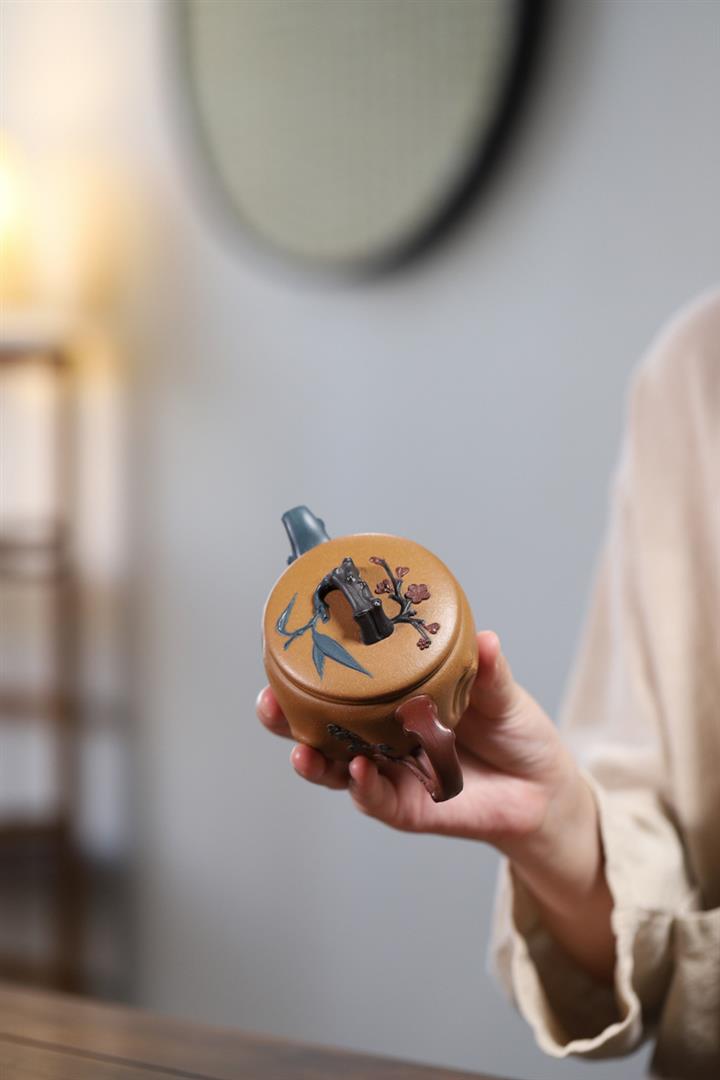 【作品介紹】此款壺形線條流暢,壺把,壺嘴,壺身壹氣呵成栩栩如生,是收藏把玩的好壺,泥料色澤古樸典雅,日久使用,漸露鋒芒,養成變化快,溫潤莊重,用其泡茶,使用的年代久,壺身就溫潤,泡出來的茶湯也就醇郁芳馨。