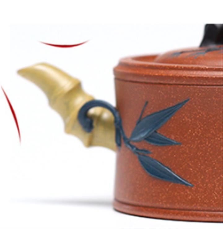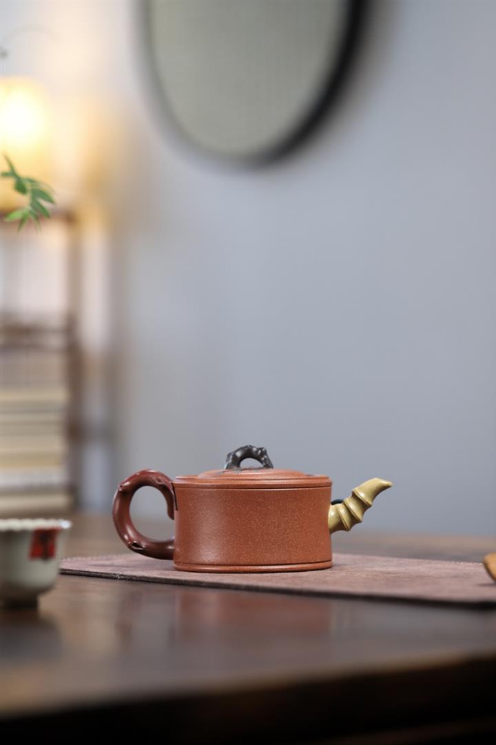 150cc原礦朱泥純手工竹葉小西施茶壺POT8539