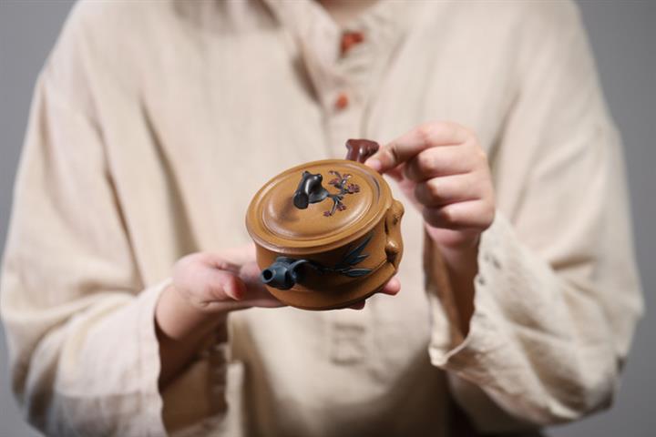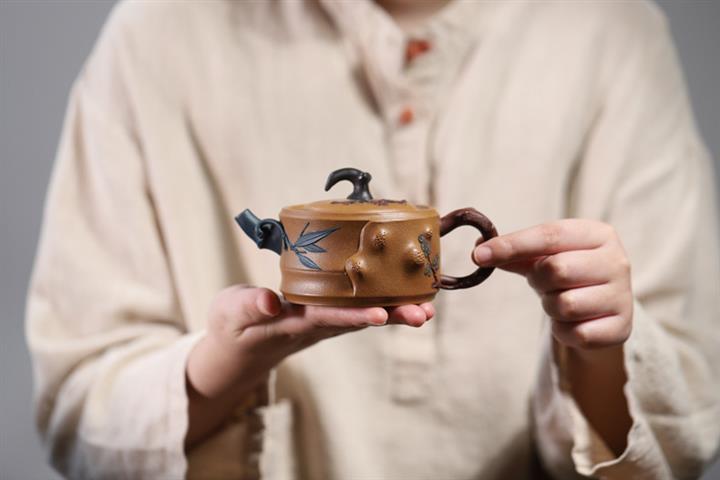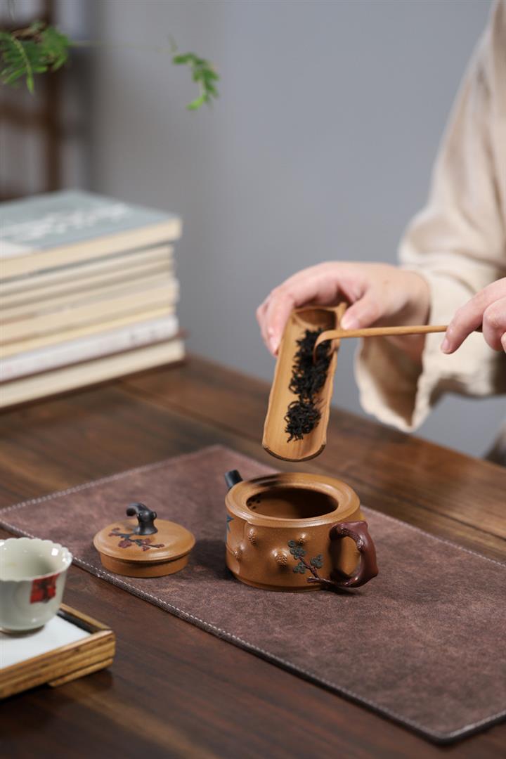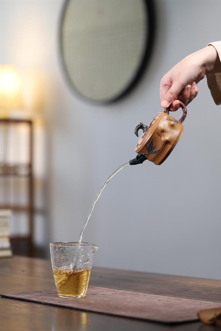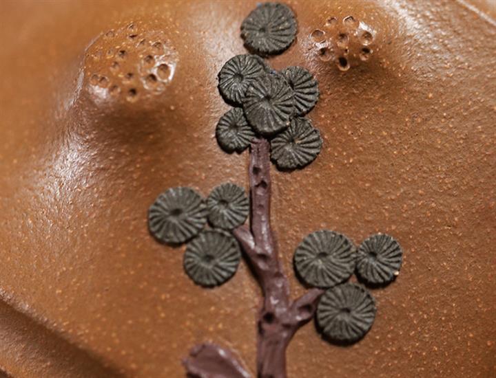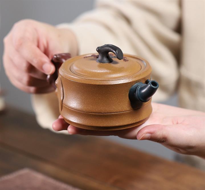 【泥料特點】砂土氣重,似淳實農民,日久使用,漸露鋒芒,養成變化,溫潤莊重。紫砂是壹種雙重氣孔結構的多孔性材質,氣孔微細,密度高。用紫砂壺沏茶,不失原味,且香不渙散,得茶之真香真味。紫砂使用越久,壺身色澤越發光亮照人,氣韻溫雅。紫砂壺長久使用器身會因撫摸擦拭,變得越發溫潤光澤。
