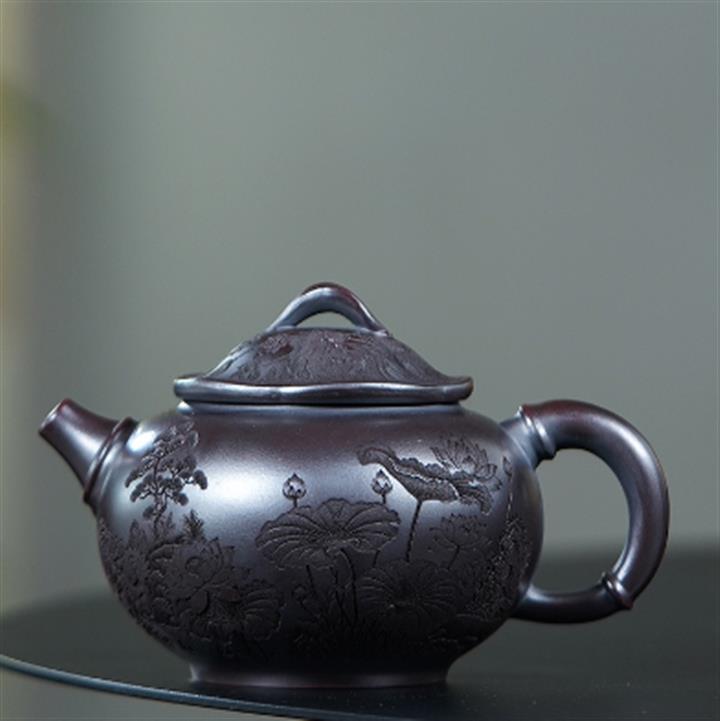 150cc原礦天星紫泥荷葉寒江茶壺POT8543