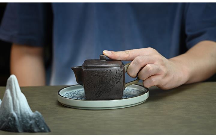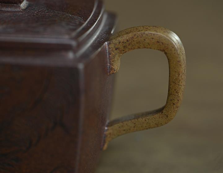 【泥料特點】砂土氣重,似淳實農民,日久使用,漸露鋒芒,養成變化,溫潤莊重。紫砂是壹種雙重氣孔結構的多孔性材質,氣孔微細,密度高。用紫砂壺沏茶,不失原味,且香不渙散,得茶之真香真味。紫砂使用越久,壺身色澤越發光亮照人,氣韻溫雅。紫砂壺長久使用器身會因撫摸擦拭,變得越發溫潤光澤。