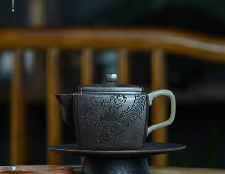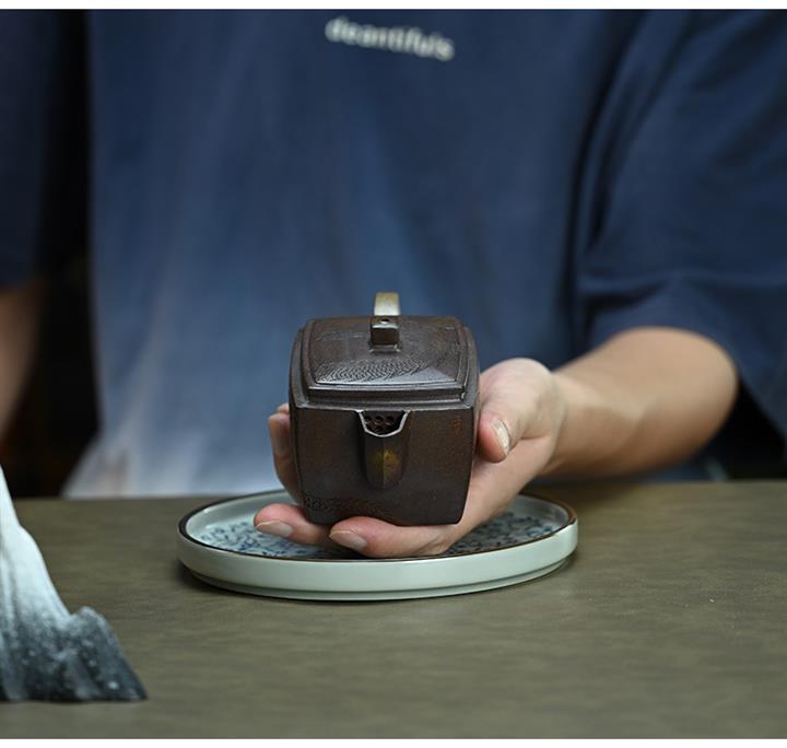 280cc原礦雲霧沈香段純手工四方漢瓦茶壺POT8538