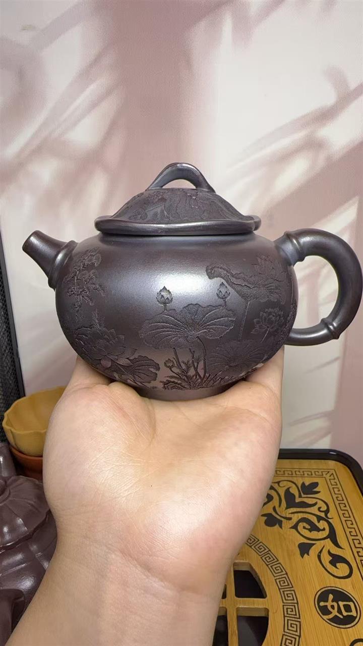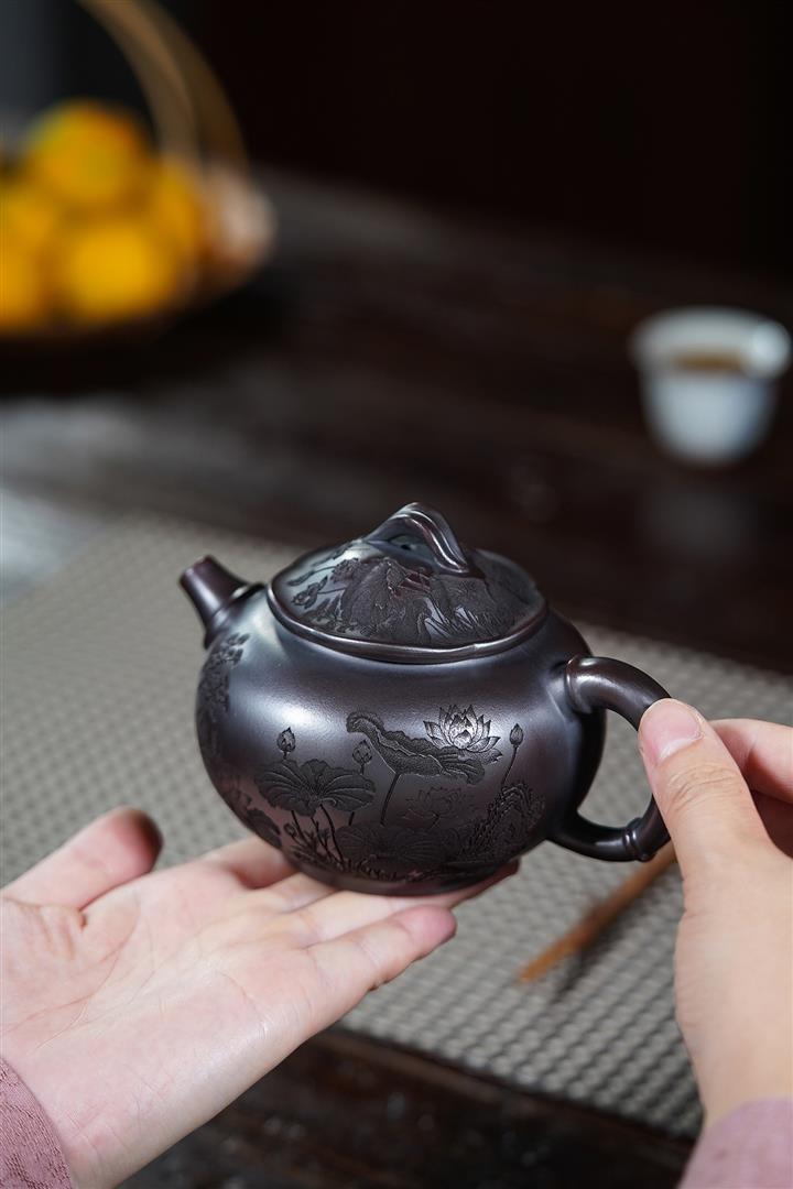 150cc原礦天星紫泥荷葉寒江茶壺POT8543
