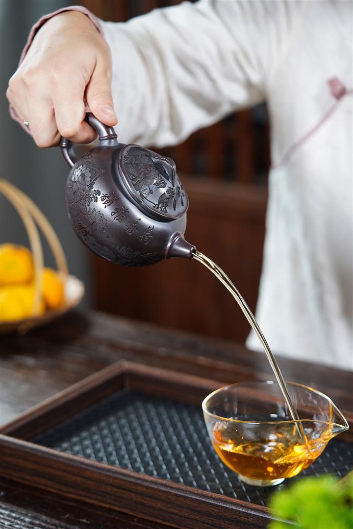 【泥料特點】砂土氣重,似淳實農民,日久使用,漸露鋒芒,養成變化,溫潤莊重。紫砂是壹種雙重氣孔結構的多孔性材質,氣孔微細,密度高。用紫砂壺沏茶,不失原味,且香不渙散,得茶之真香真味。紫砂使用越久,壺身色澤越發光亮照人,氣韻溫雅。紫砂壺長久使用器身會因撫摸擦拭,變得越發溫潤光澤。