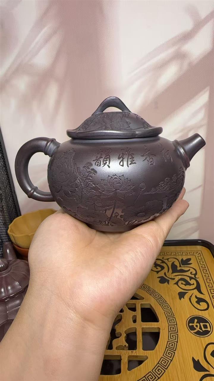 170cc原礦老紫泥竹報平安包漿茶壺POT8544