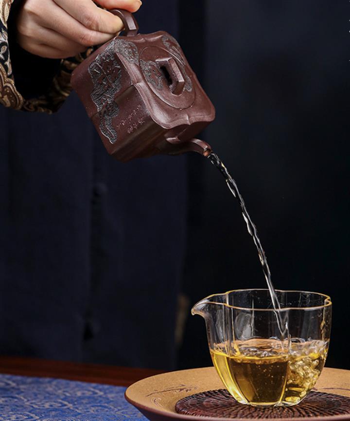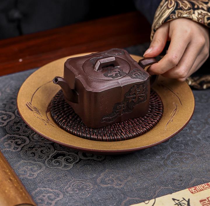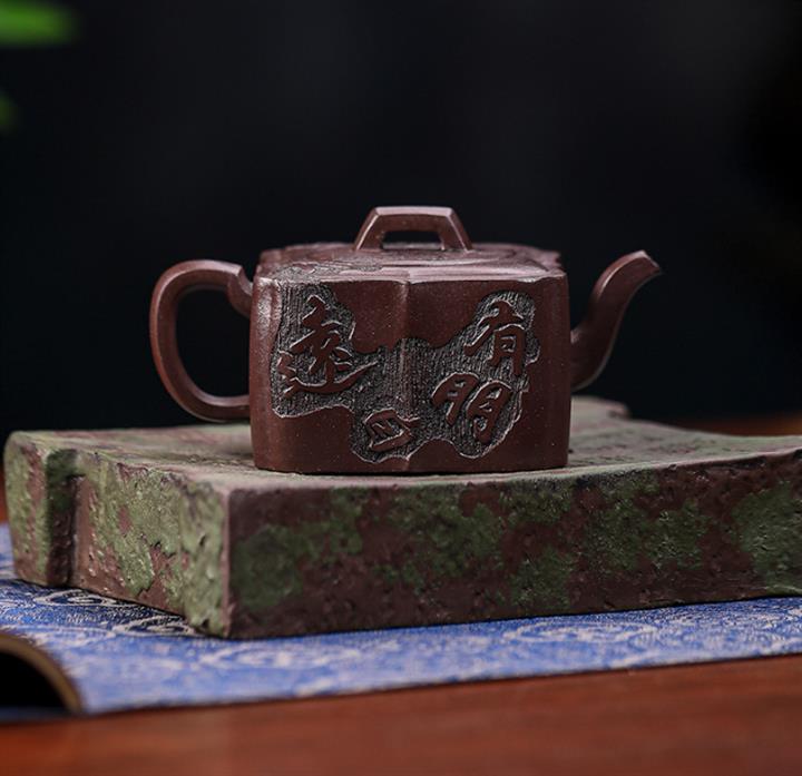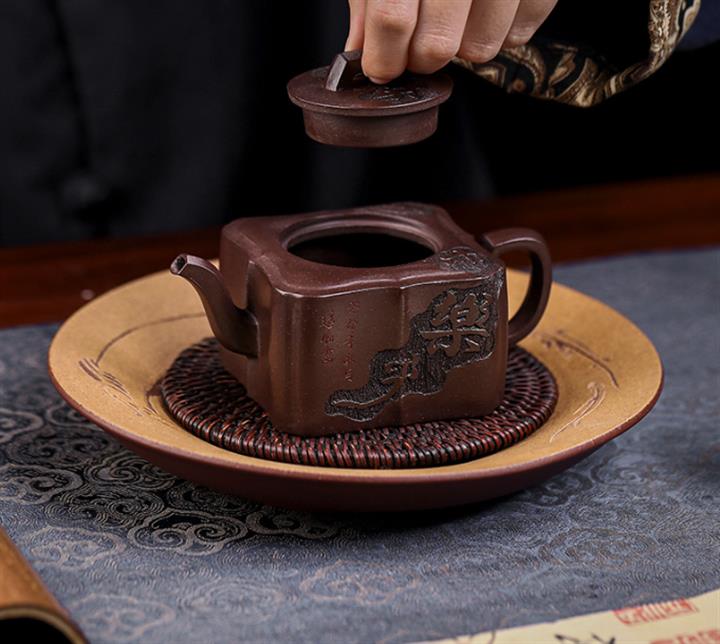 【泥料特點】砂土氣重,似淳實農民,日久使用,漸露鋒芒,養成變化,溫潤莊重。紫砂是壹種雙重氣孔結構的多孔性材質,氣孔微細,密度高。用紫砂壺沏茶,不失原味,且香不渙散,得茶之真香真味。紫砂使用越久,壺身色澤越發光亮照人,氣韻溫雅。紫砂壺長久使用器身會因撫摸擦拭,變得越發溫潤光澤。