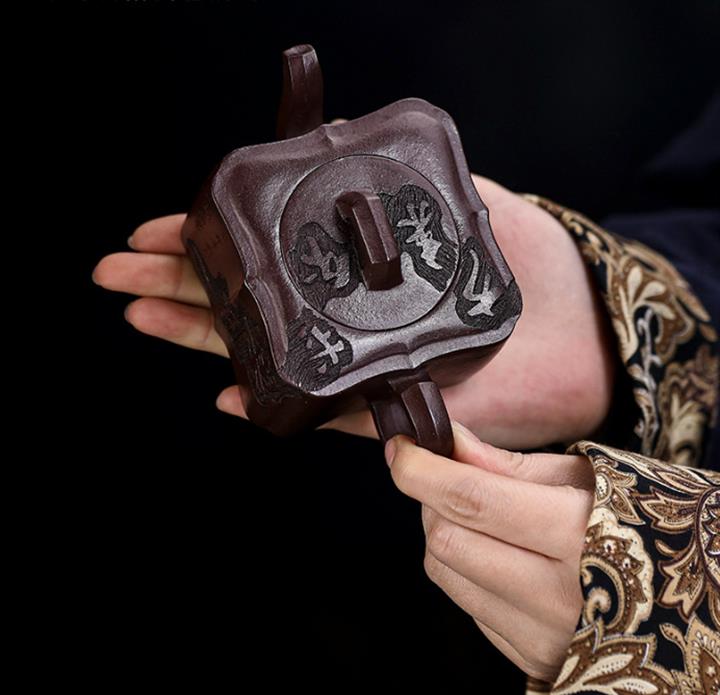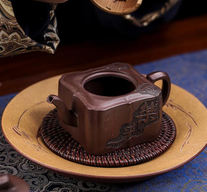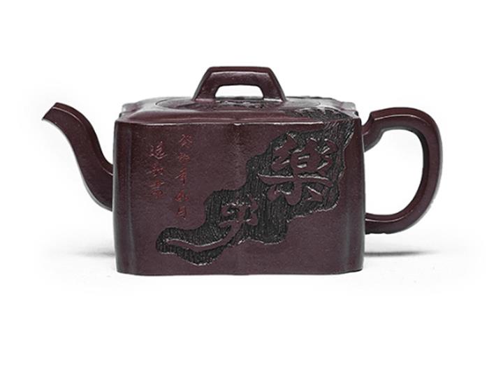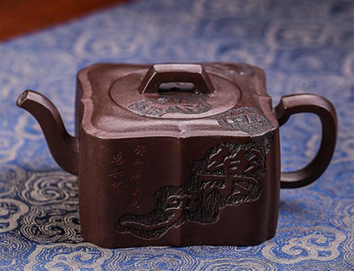 660cc原礦石紅泥滿刻山河鶴影茶壺POT8551