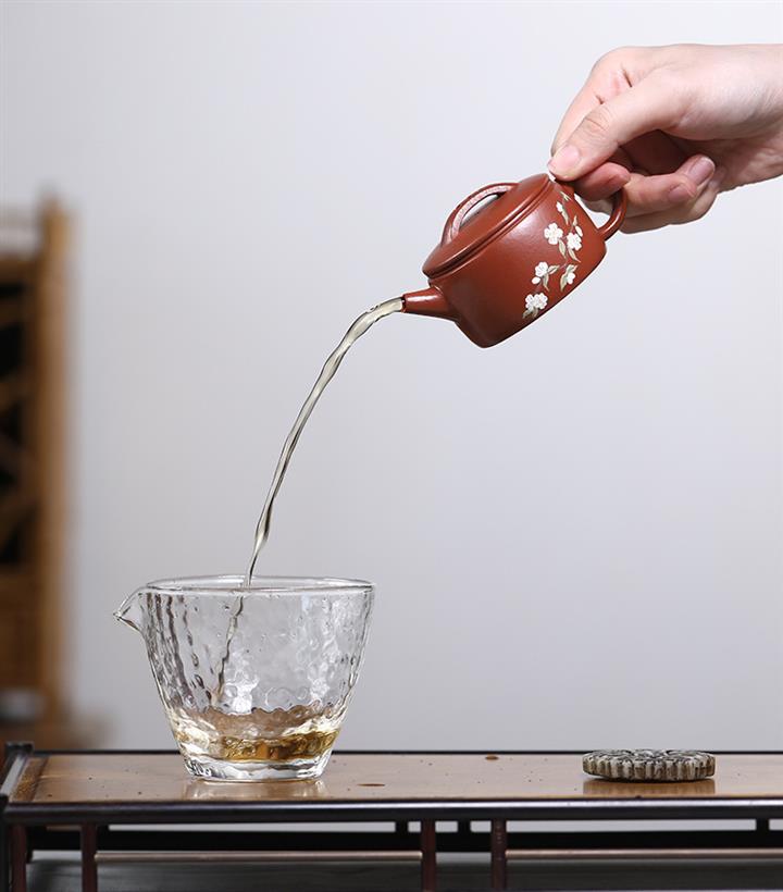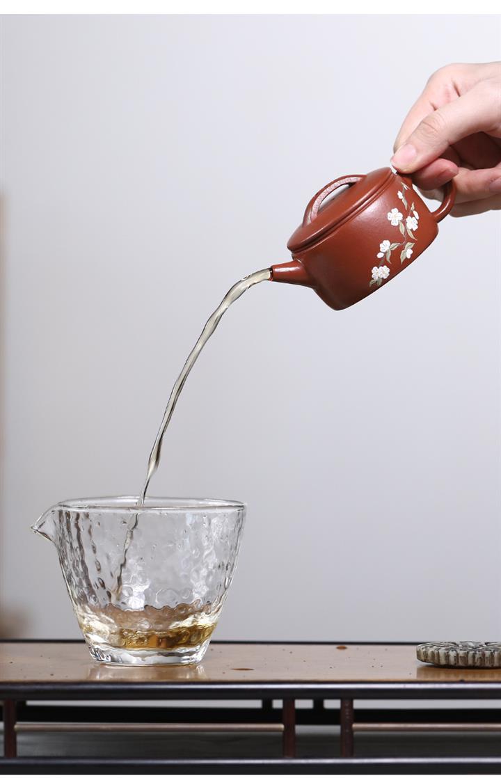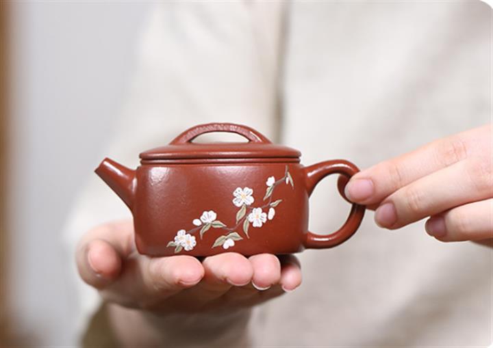 【泥料特點】砂土氣重,似淳實農民,日久使用,漸露鋒芒,養成變化,溫潤莊重。紫砂是壹種雙重氣孔結構的多孔性材質,氣孔微細,密度高。用紫砂壺沏茶,不失原味,且香不渙散,得茶之真香真味。紫砂使用越久,壺身色澤越發光亮照人,氣韻溫雅。紫砂壺長久使用器身會因撫摸擦拭,變得越發溫潤光澤。